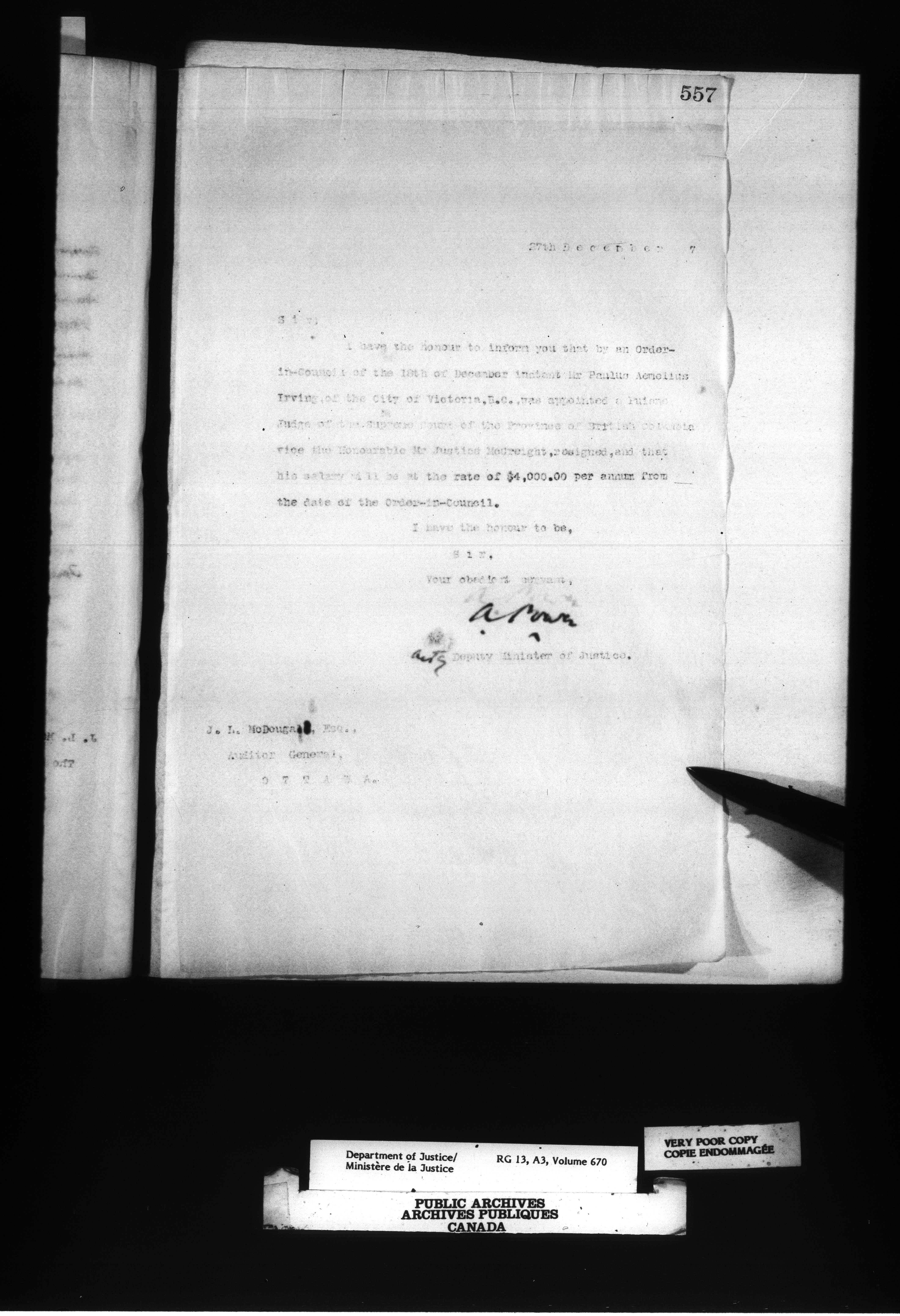 Letterbooks of the Office of the Deputy Minister of Justice : C-14381