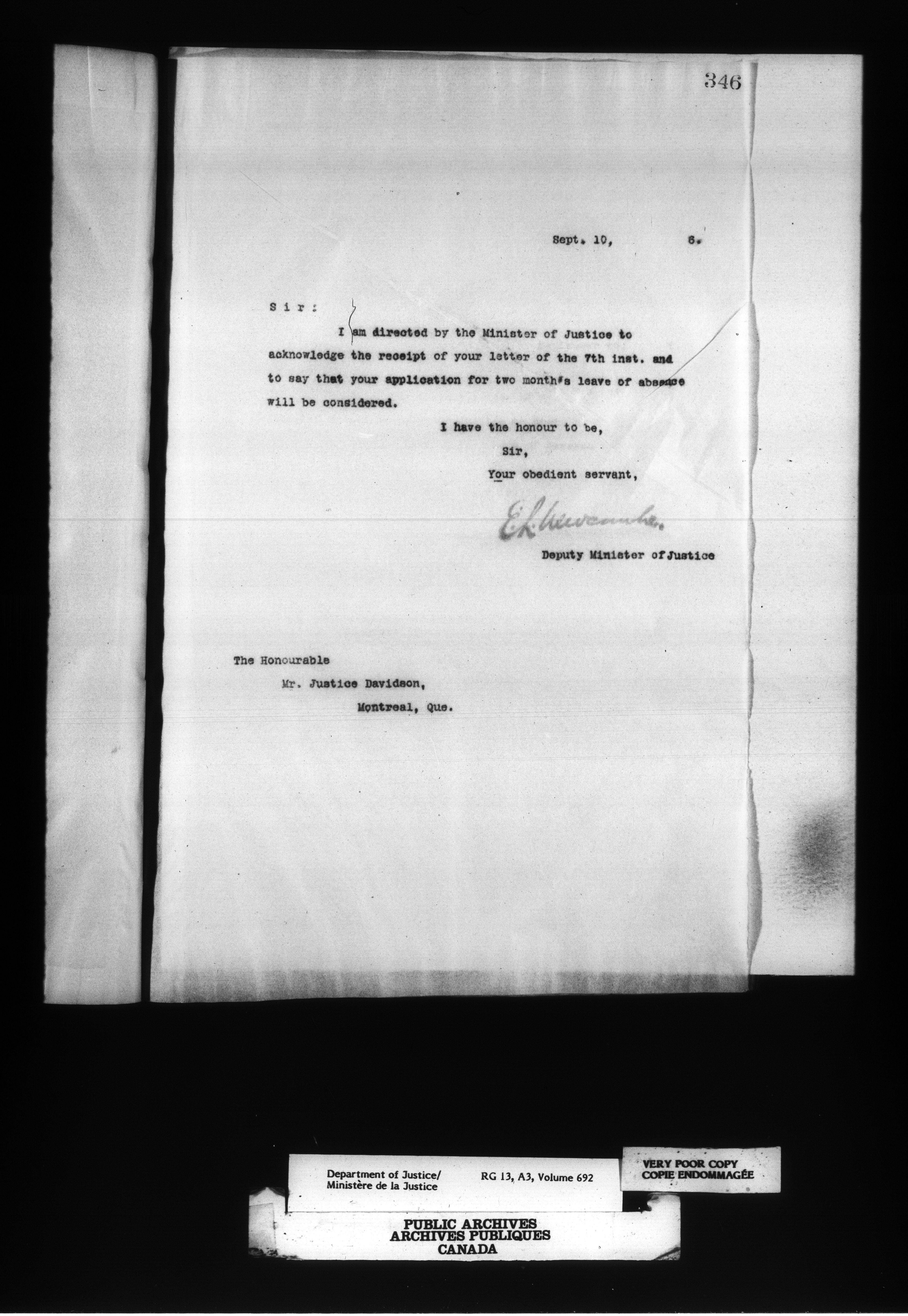 Letterbooks of the Office of the Deputy Minister of Justice - 14396