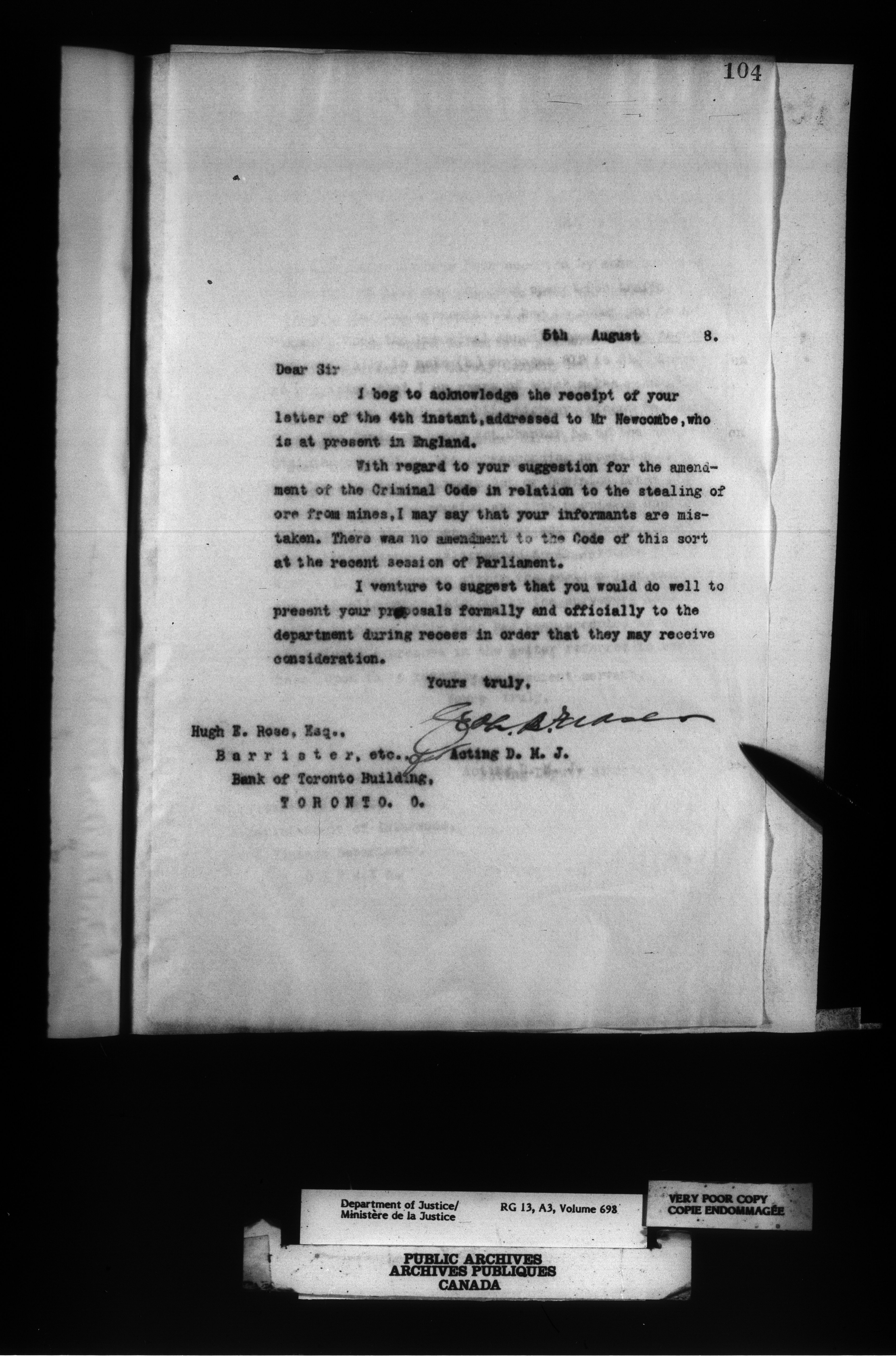 Letterbooks of the Office of the Deputy Minister of Justice - 14400