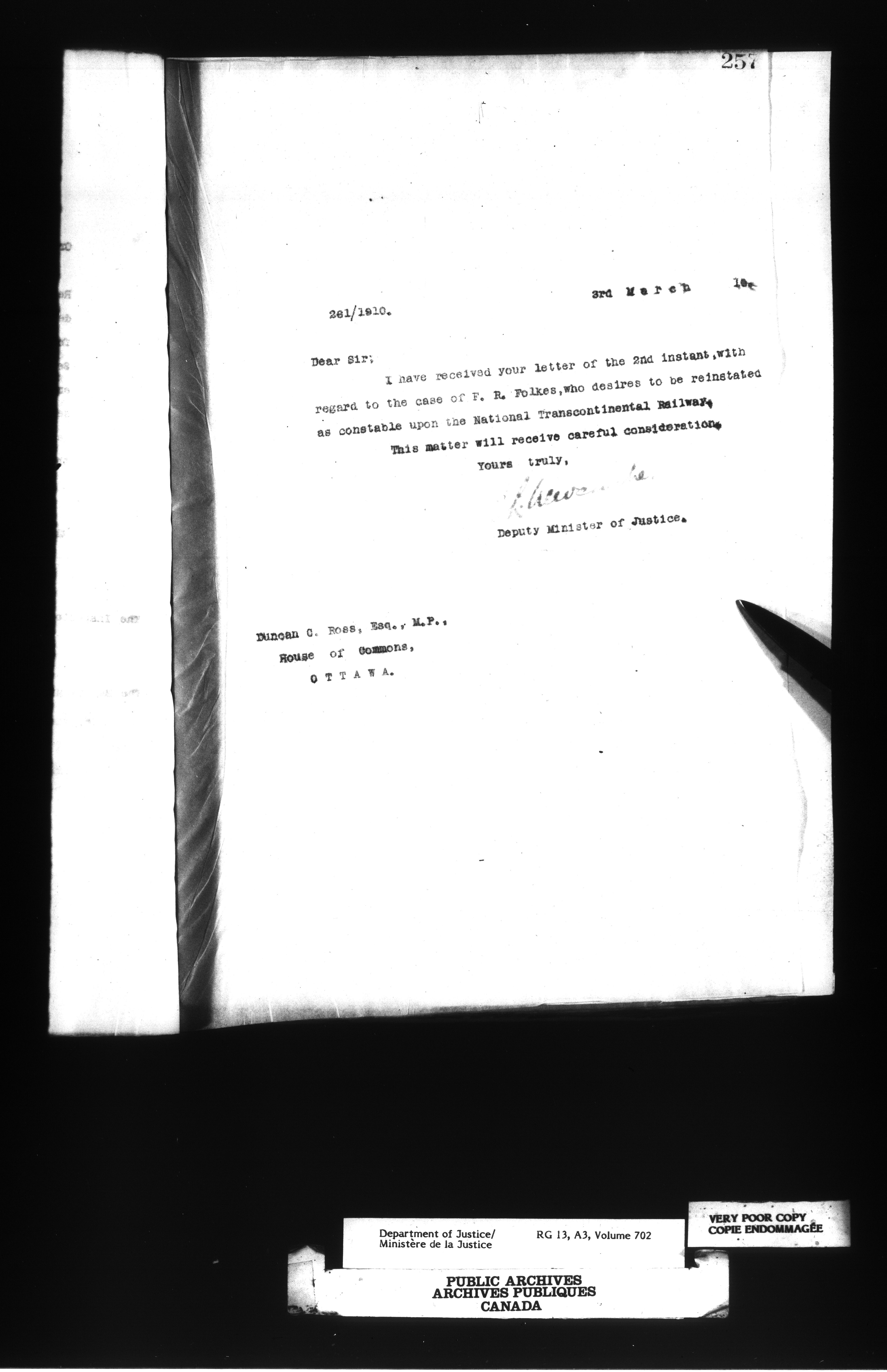 Letterbooks of the Office of the Deputy Minister of Justice : C-14403