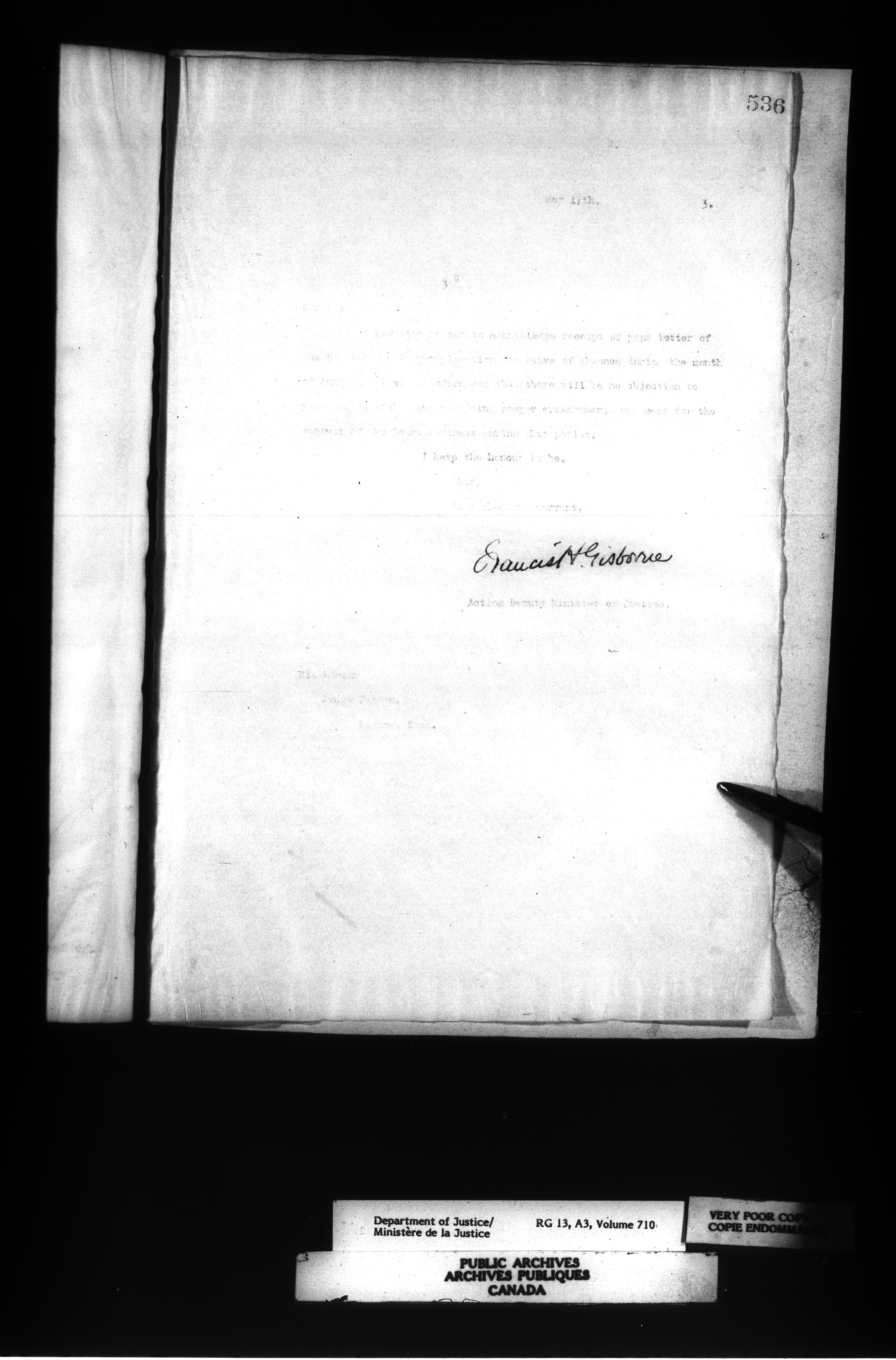 Letterbooks of the Office of the Deputy Minister of Justice - 14409