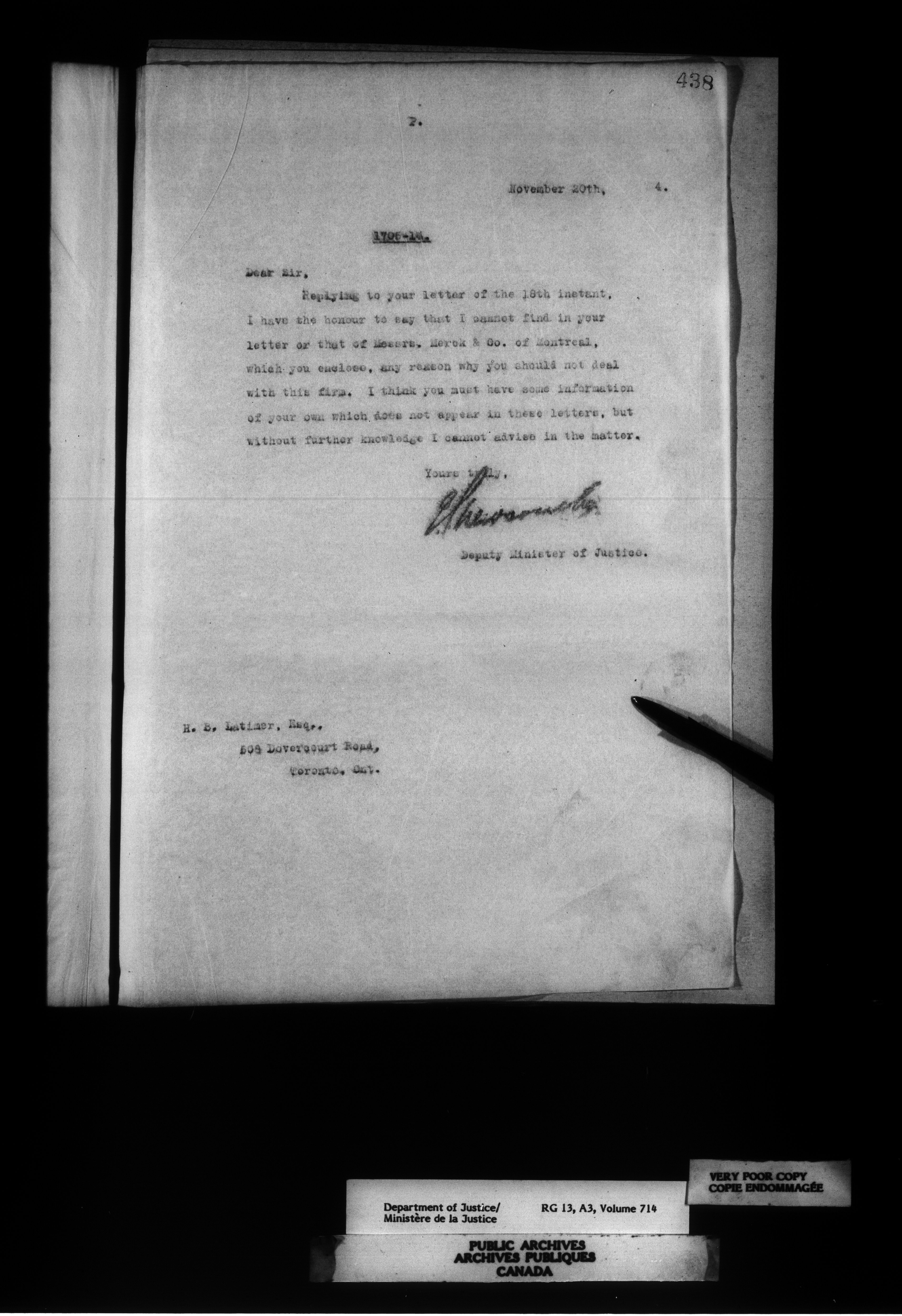 Letterbooks of the Office of the Deputy Minister of Justice - 14413