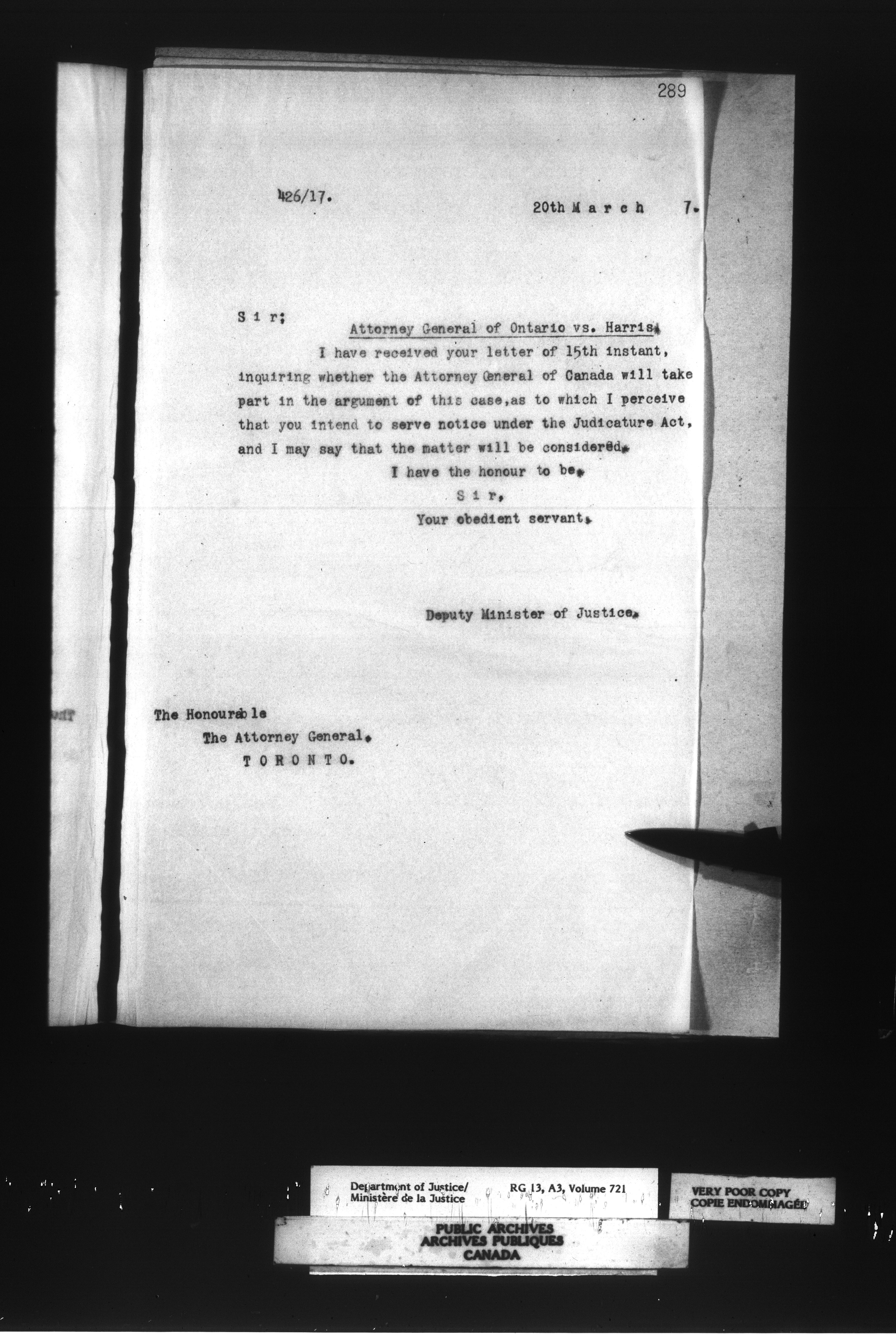 Letterbooks of the Office of the Deputy Minister of Justice - 14417