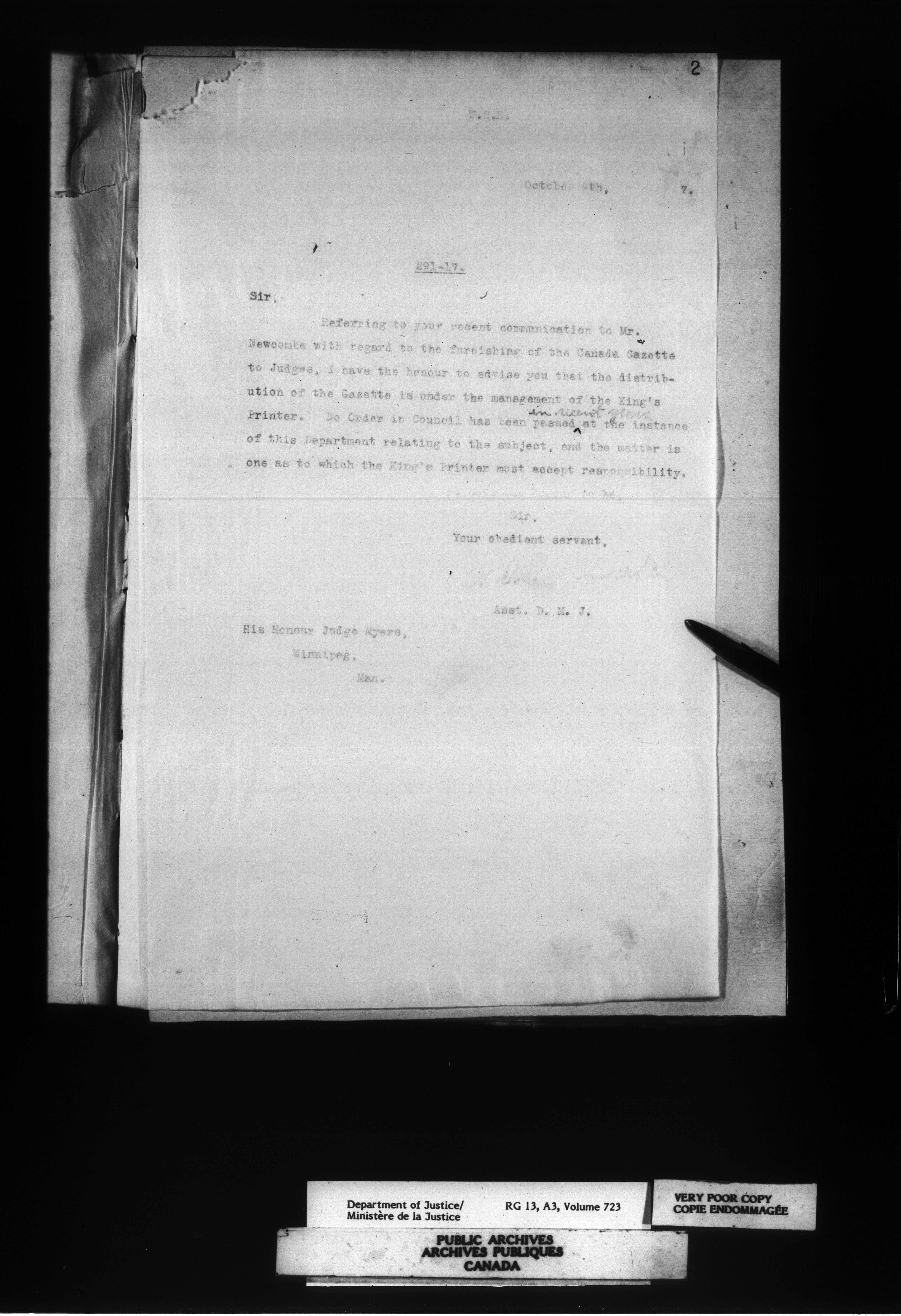 Letterbooks of the Office of the Deputy Minister of Justice - 14419