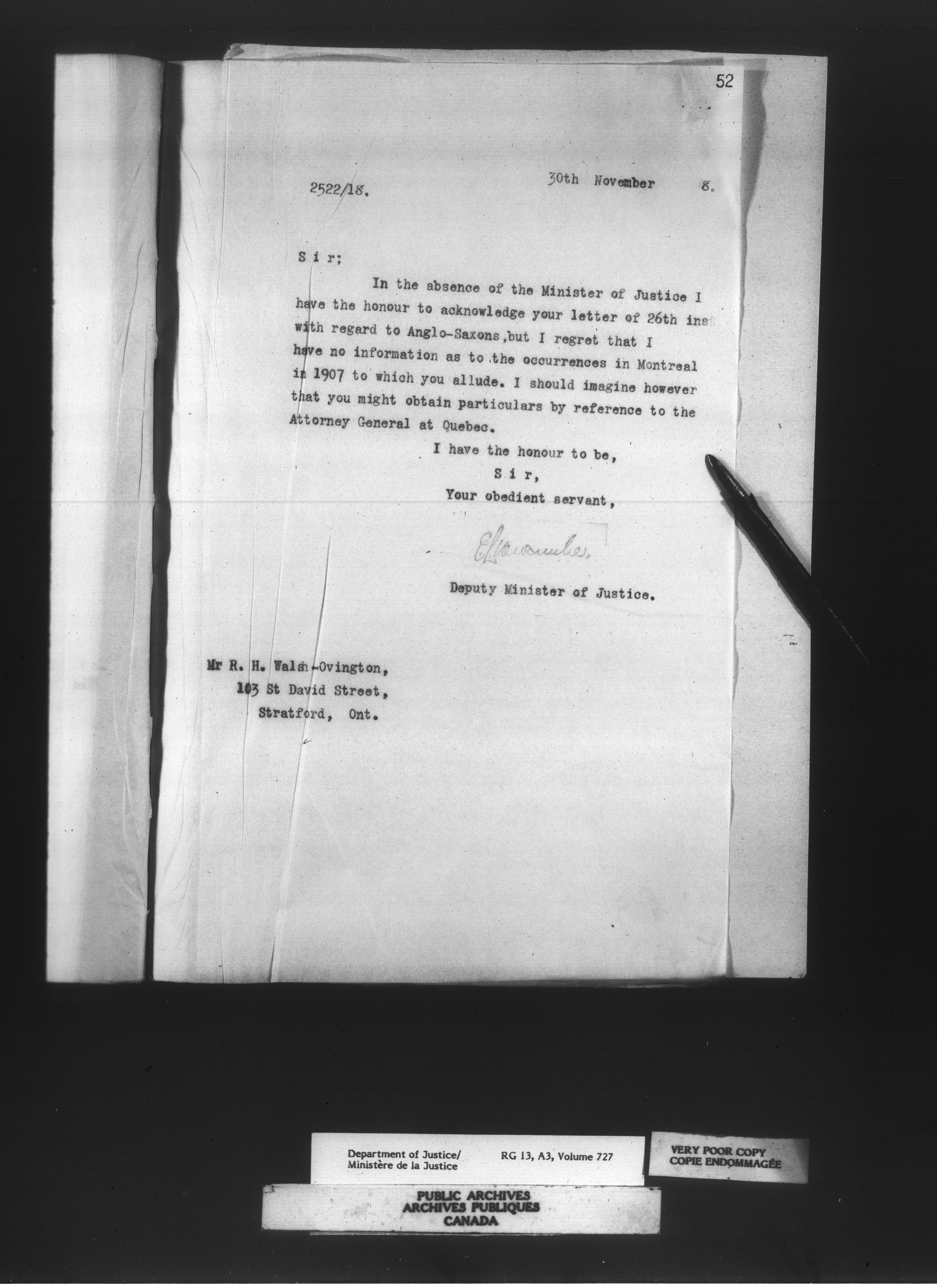 Letterbooks of the Office of the Deputy Minister of Justice - 14421