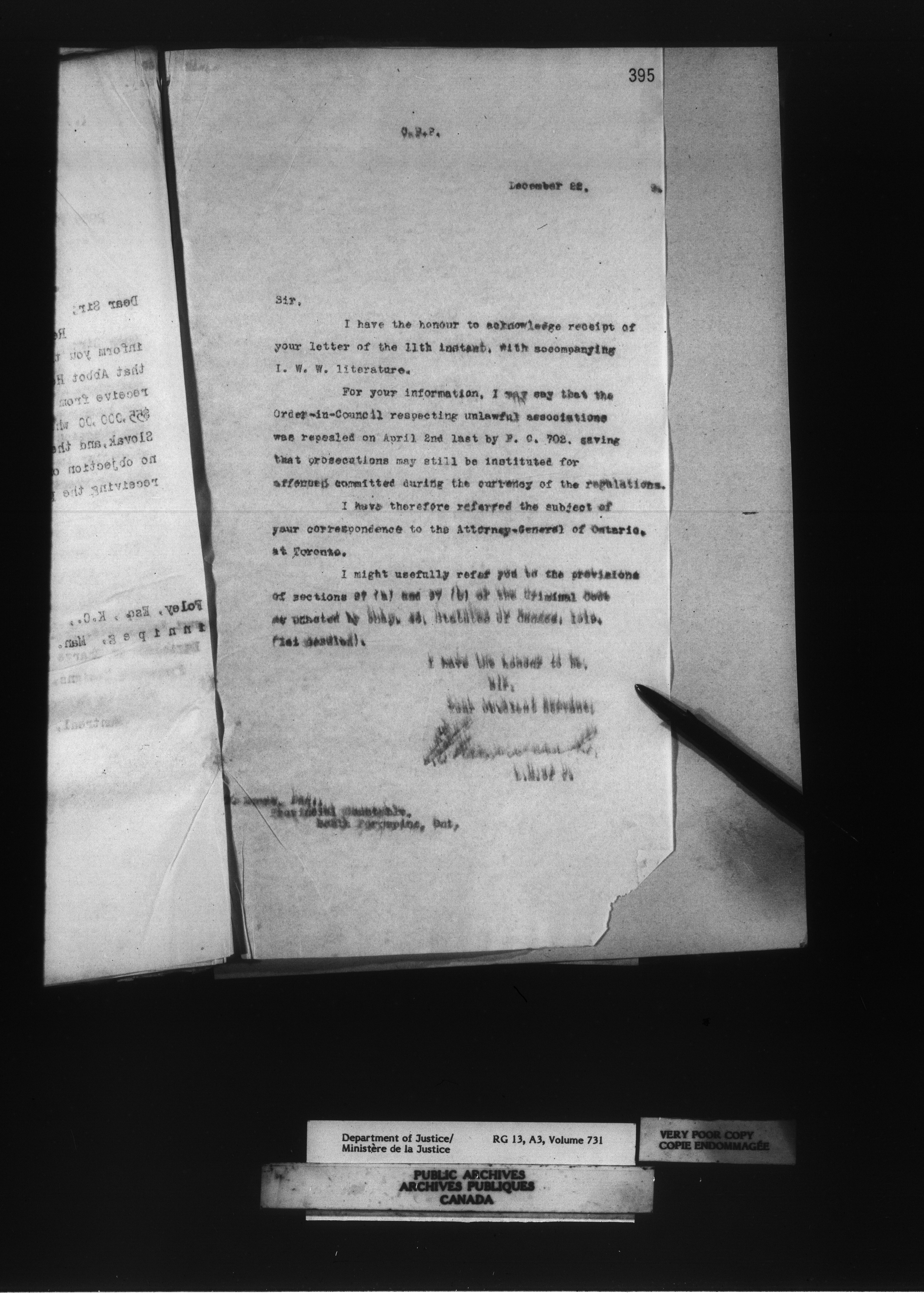 Letterbooks of the Office of the Deputy Minister of Justice : C-14425