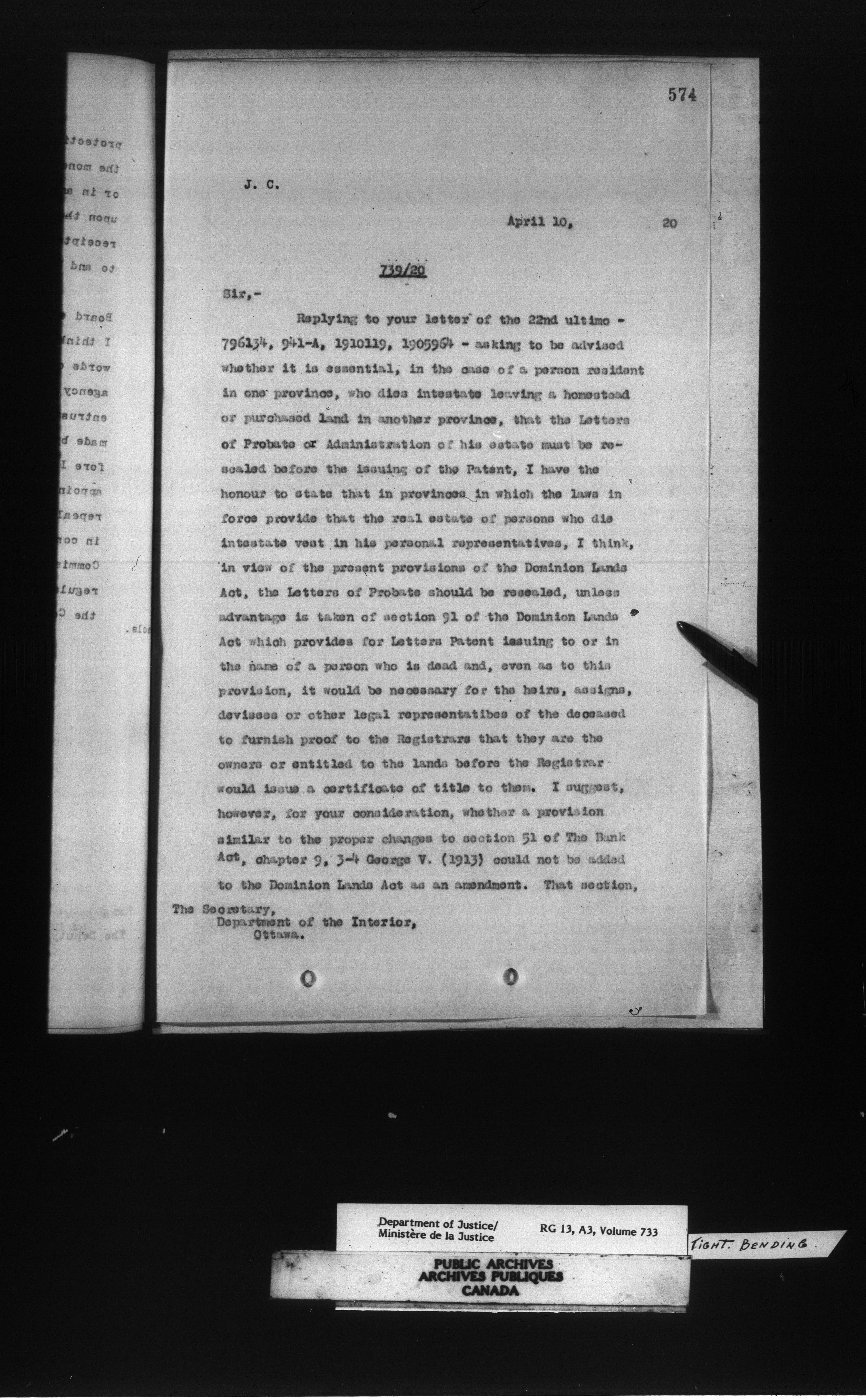 Letterbooks of the Office of the Deputy Minister of Justice - 14426