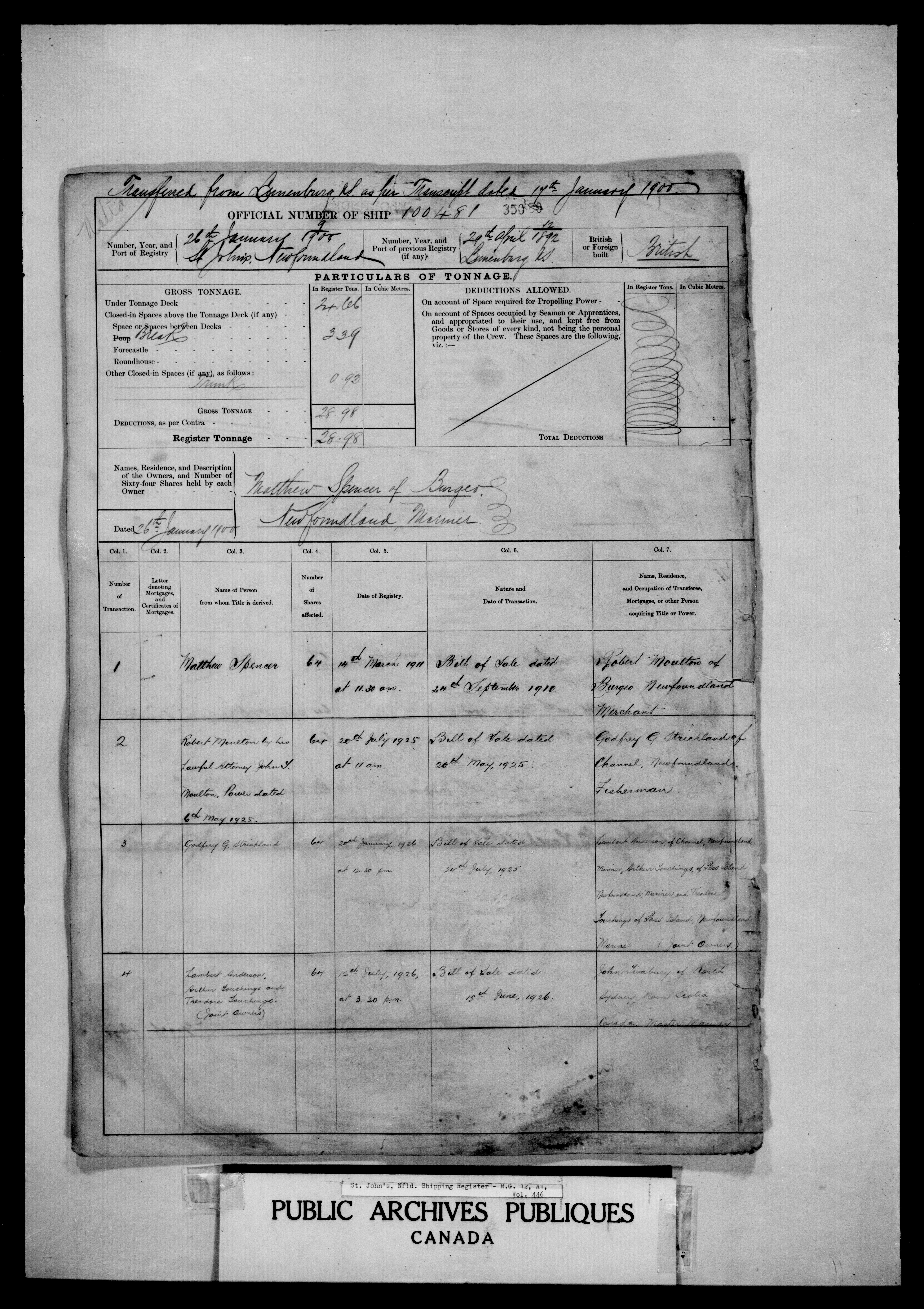 St. John's [Newfoundland] Registrar of Shipping, 1843-1983 : C-1448