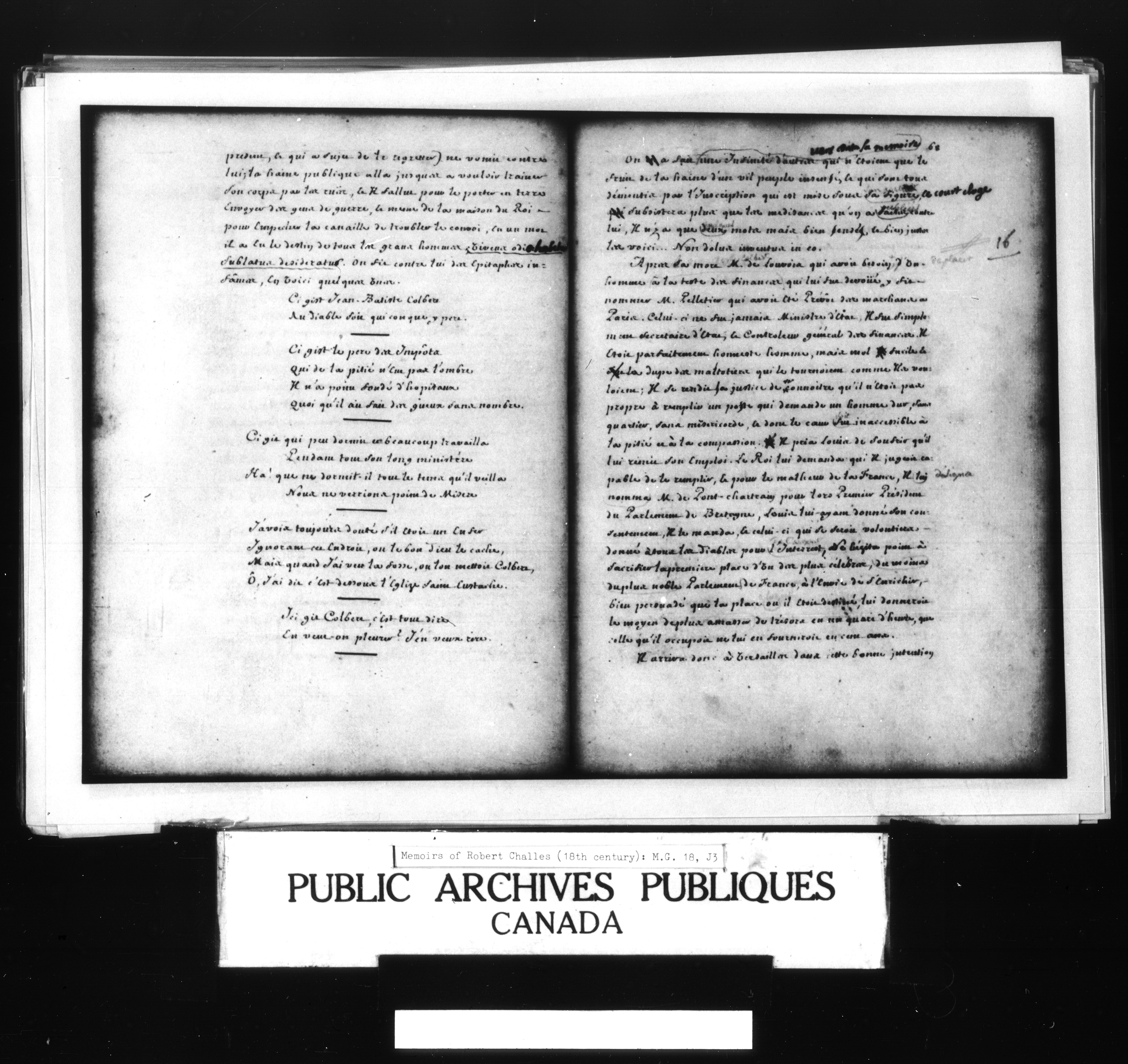 Challes, Robert (18th Century) Memoirs of Robert Challes which refer to the work of the Jesuits and to the cession to England of Acadia, Newfoudland and Hudson Bay by the Treaty of Utrecht - 1454
