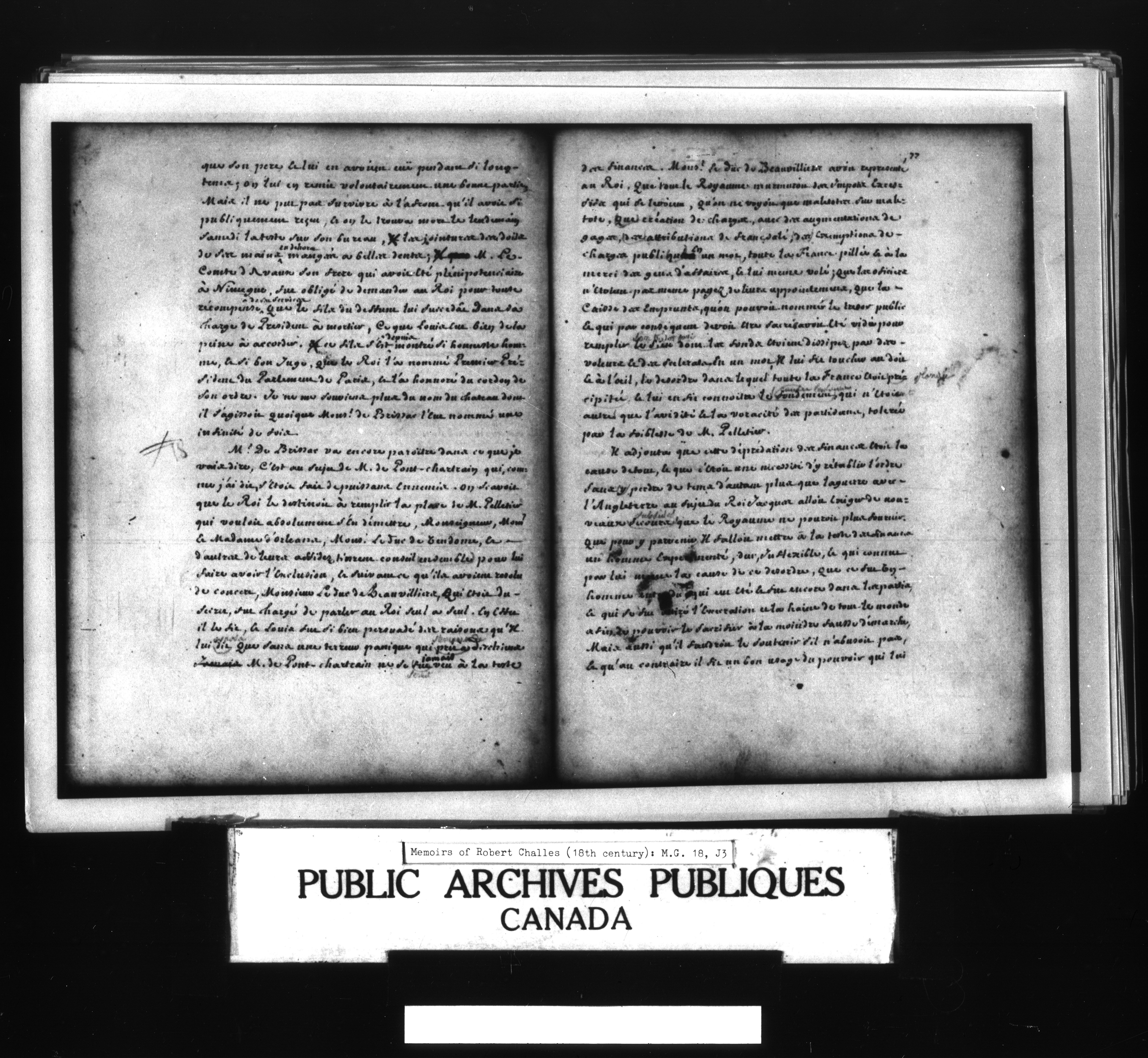Challes, Robert (18th Century) Memoirs of Robert Challes which refer to the work of the Jesuits and to the cession to England of Acadia, Newfoudland and Hudson Bay by the Treaty of Utrecht - 1454