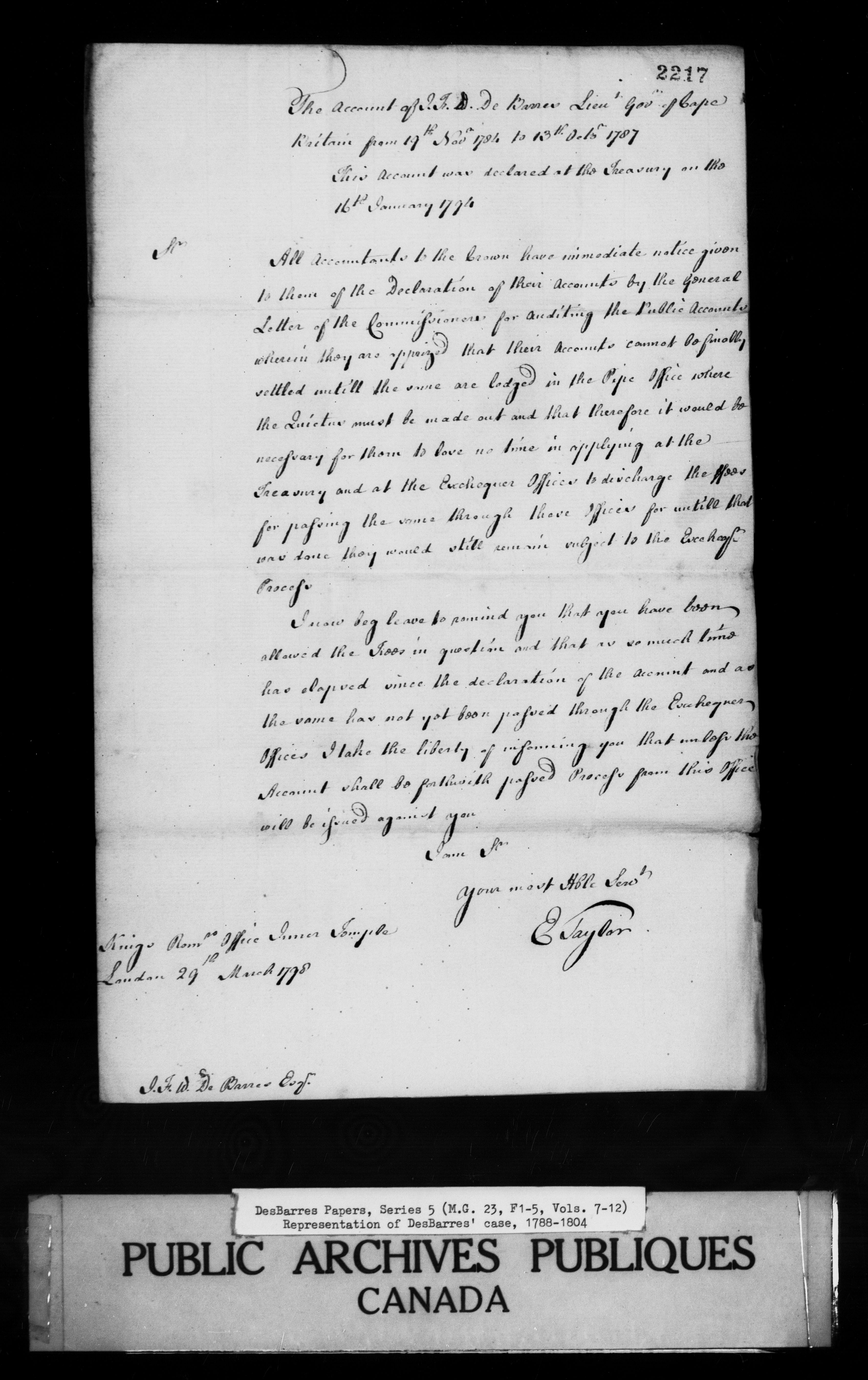 Desbarres Papers - 1457