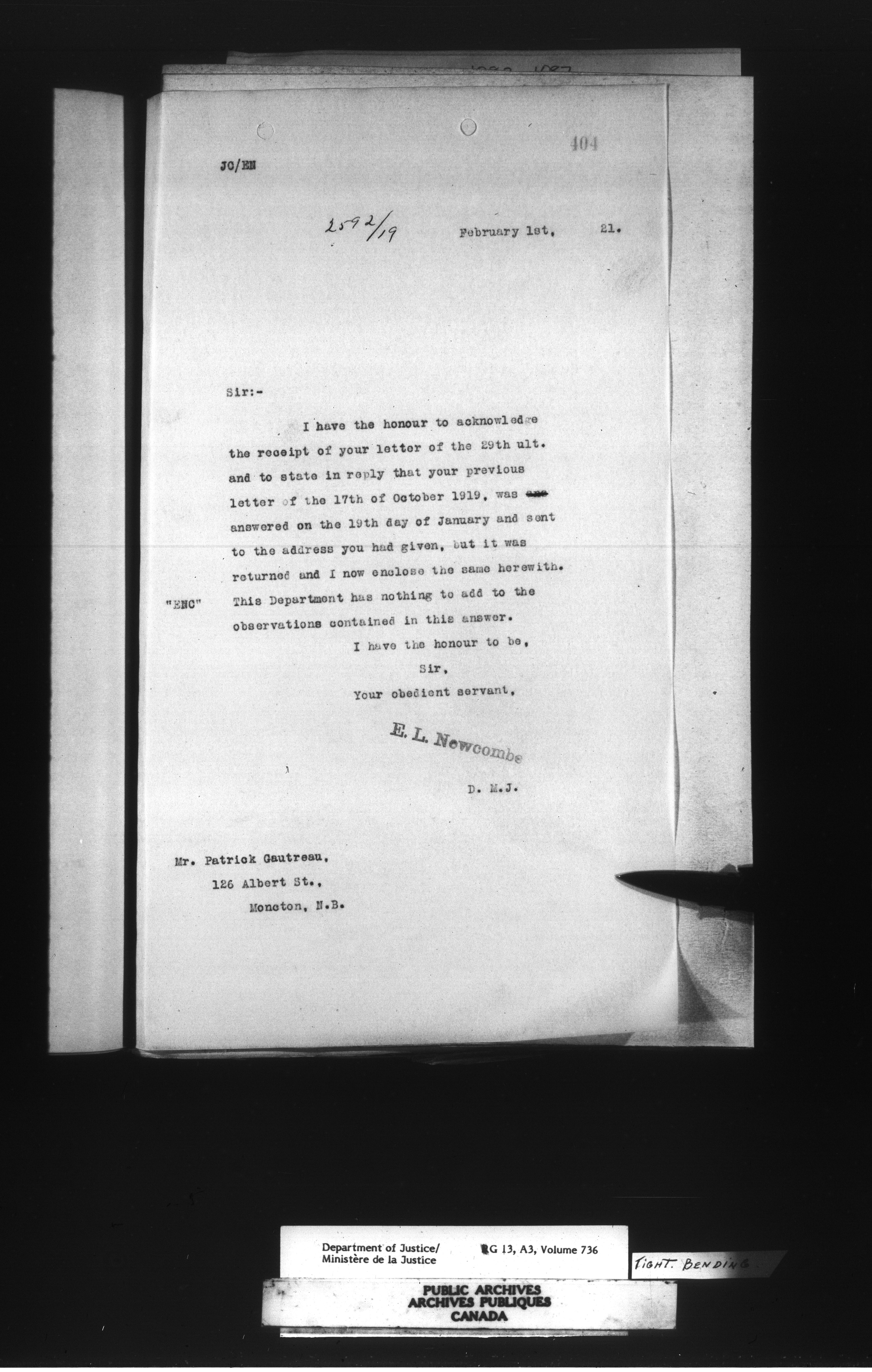 Letterbooks of the Office of the Deputy Minister of Justice - 14715