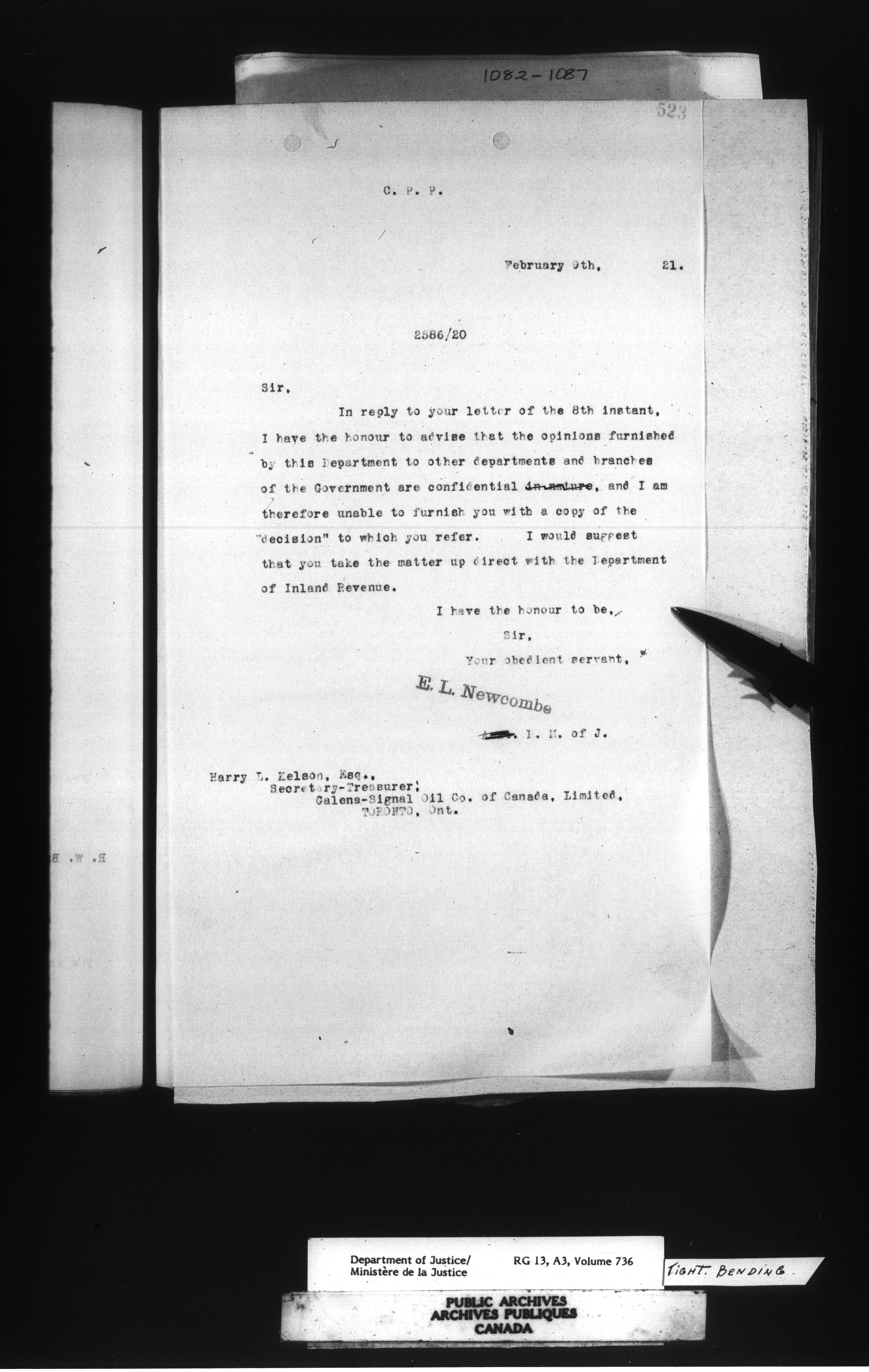 Letterbooks of the Office of the Deputy Minister of Justice : C-14716