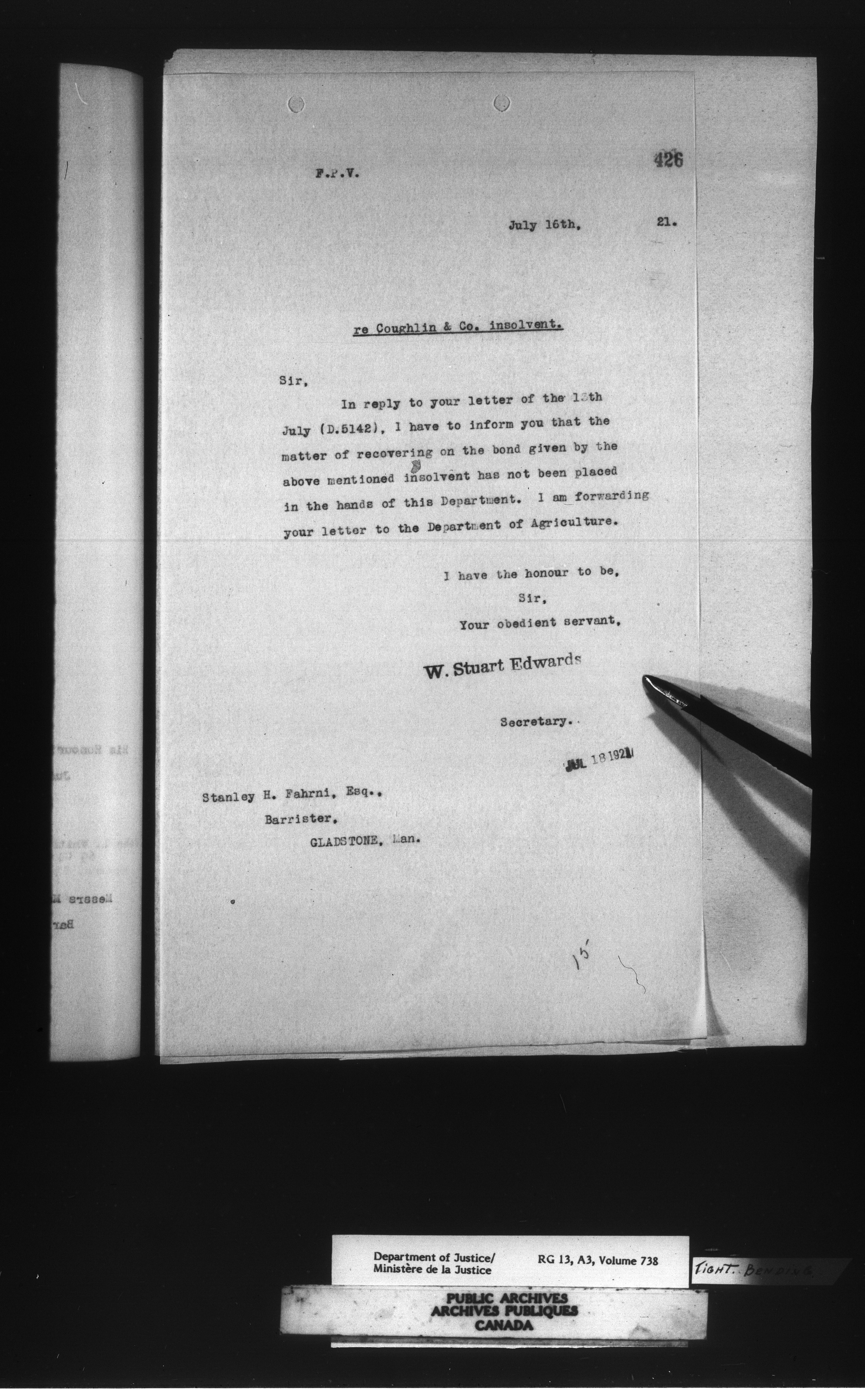 Letterbooks of the Office of the Deputy Minister of Justice - 14718