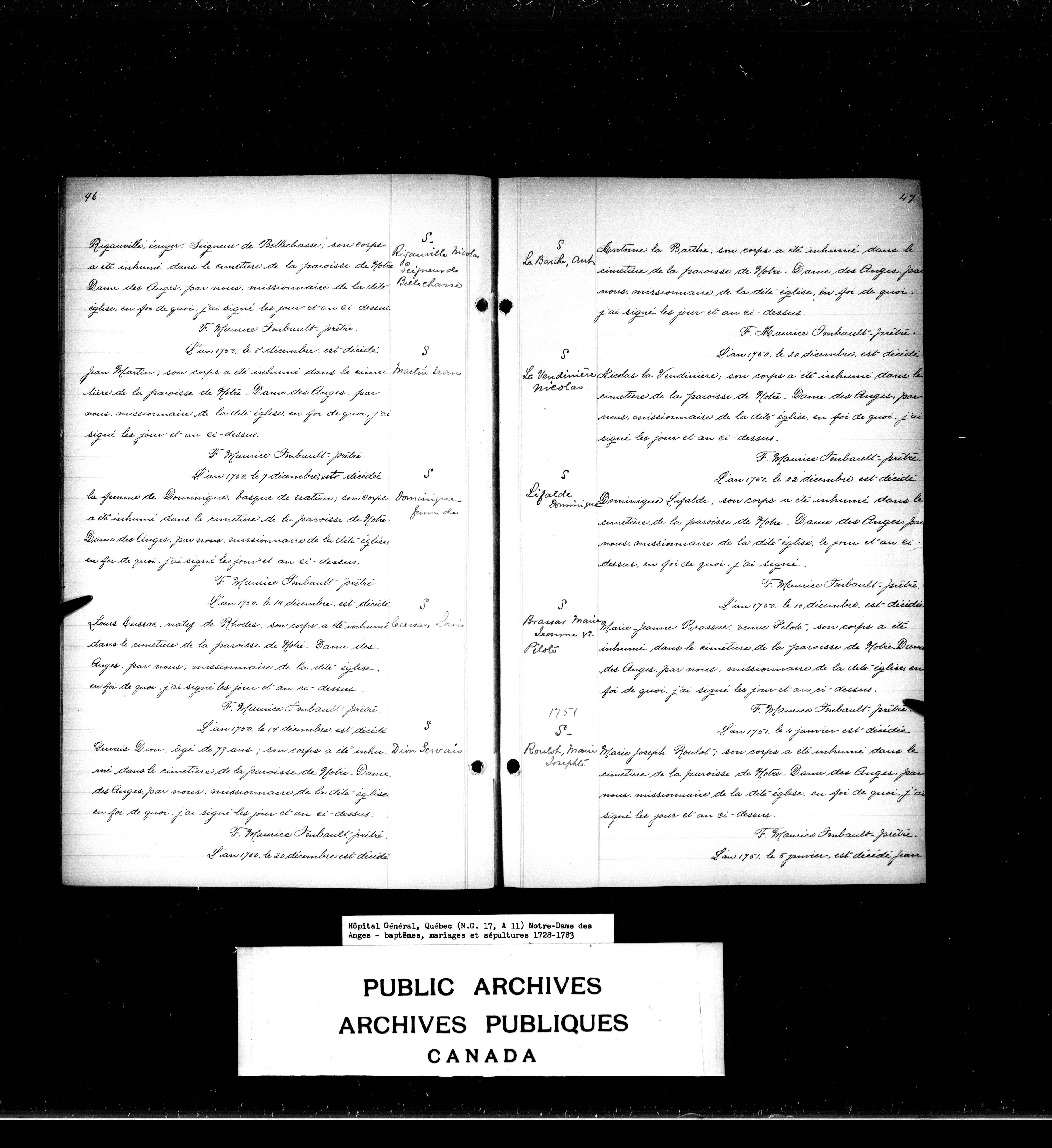 Québec, comté de Quebec/Québec Co., Qué. : Notre-Dame-des-Anges (Hôpital-général) (Église catholique), Registres des BMD, 1728-1783