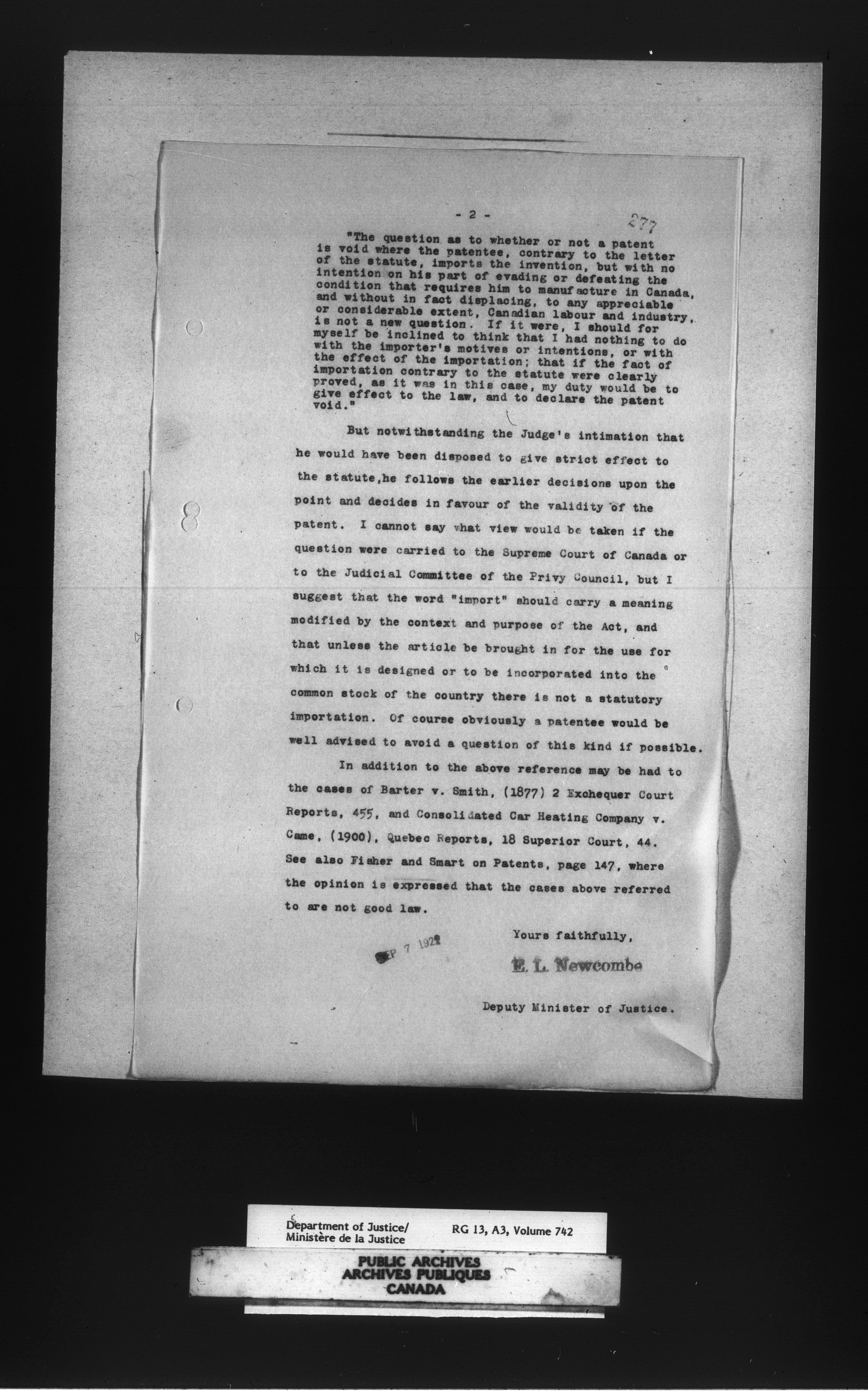 Letterbooks of the Office of the Deputy Minister of Justice - 14722