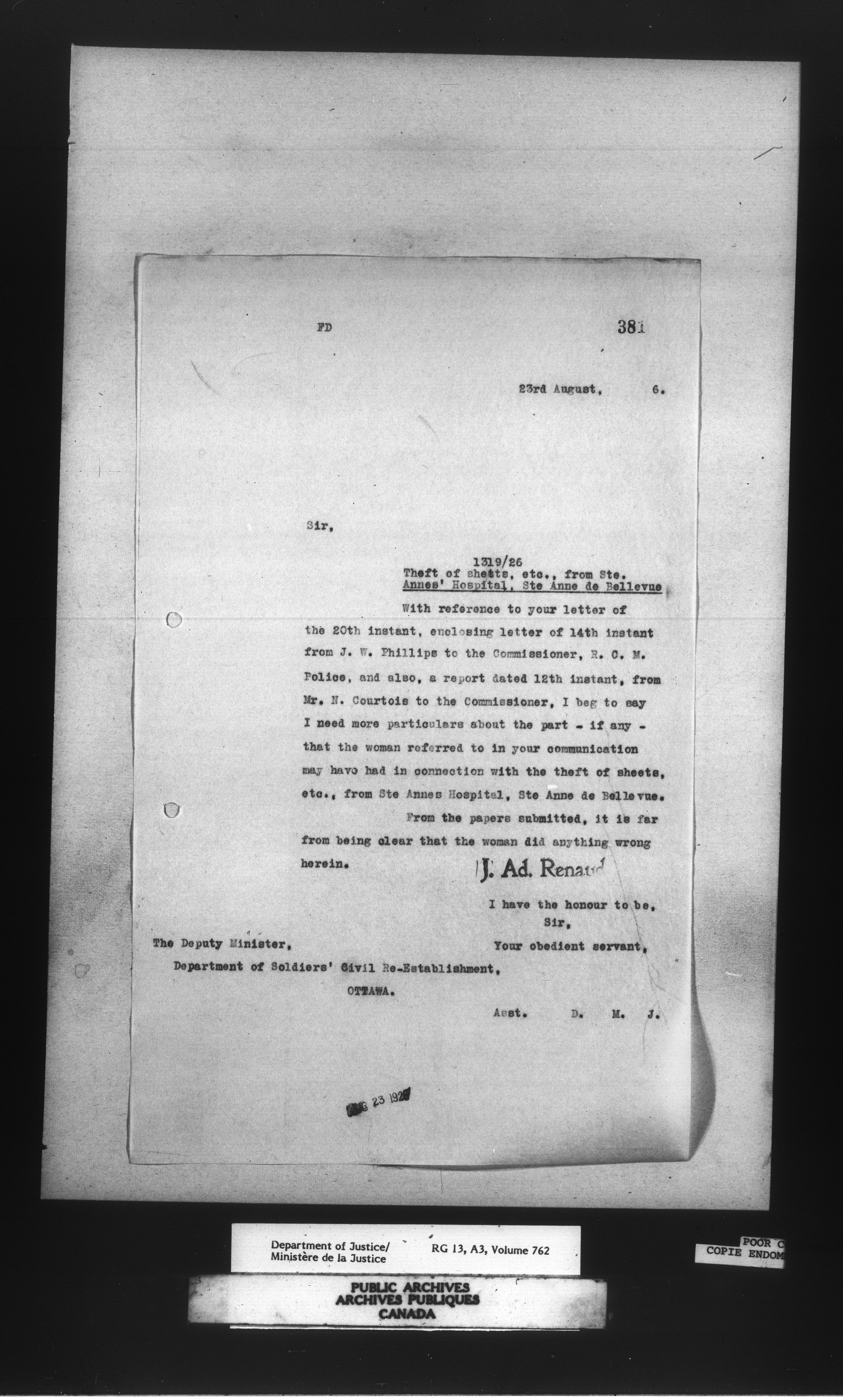 Letterbooks of the Office of the Deputy Minister of Justice - 14735