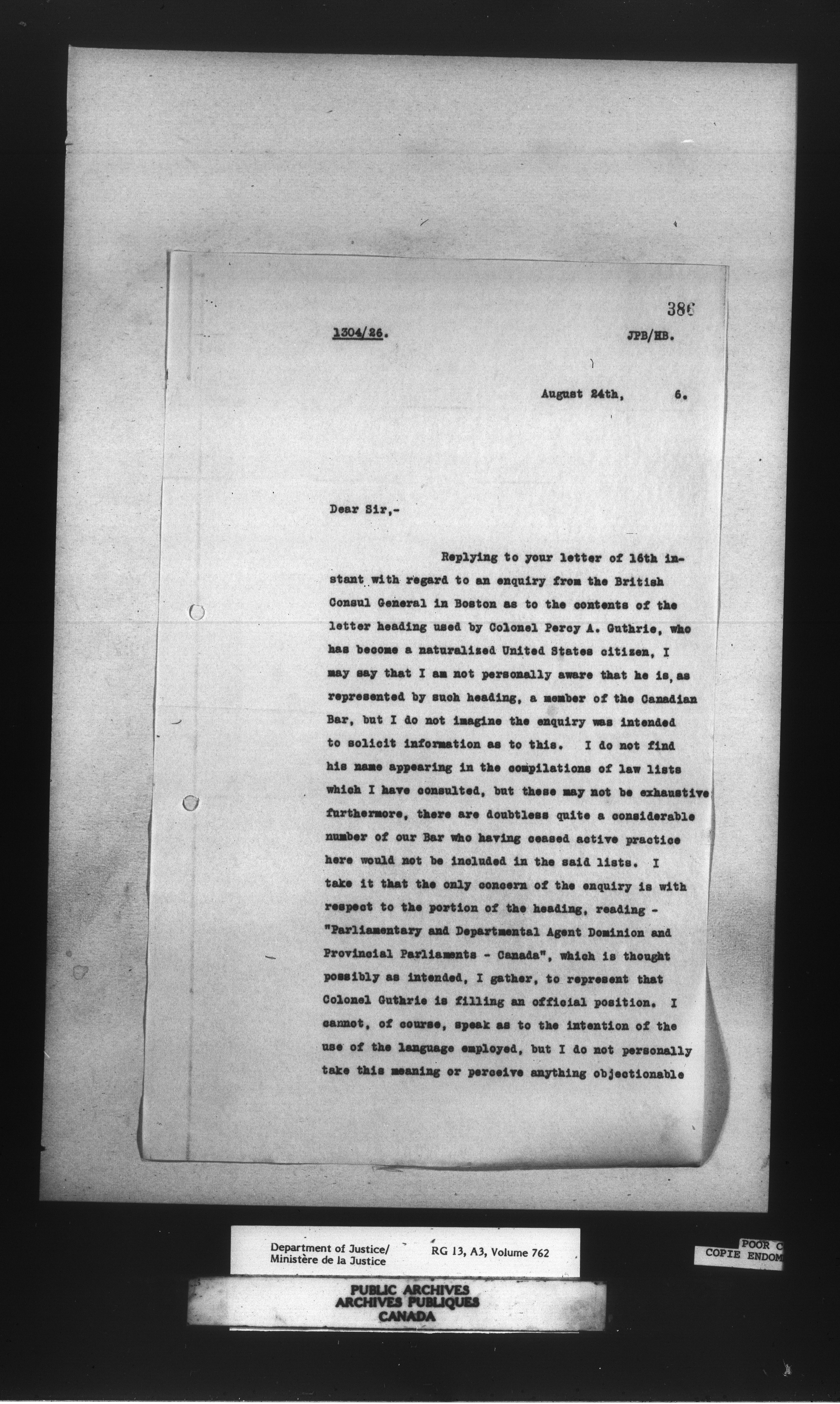 Letterbooks of the Office of the Deputy Minister of Justice - 14735