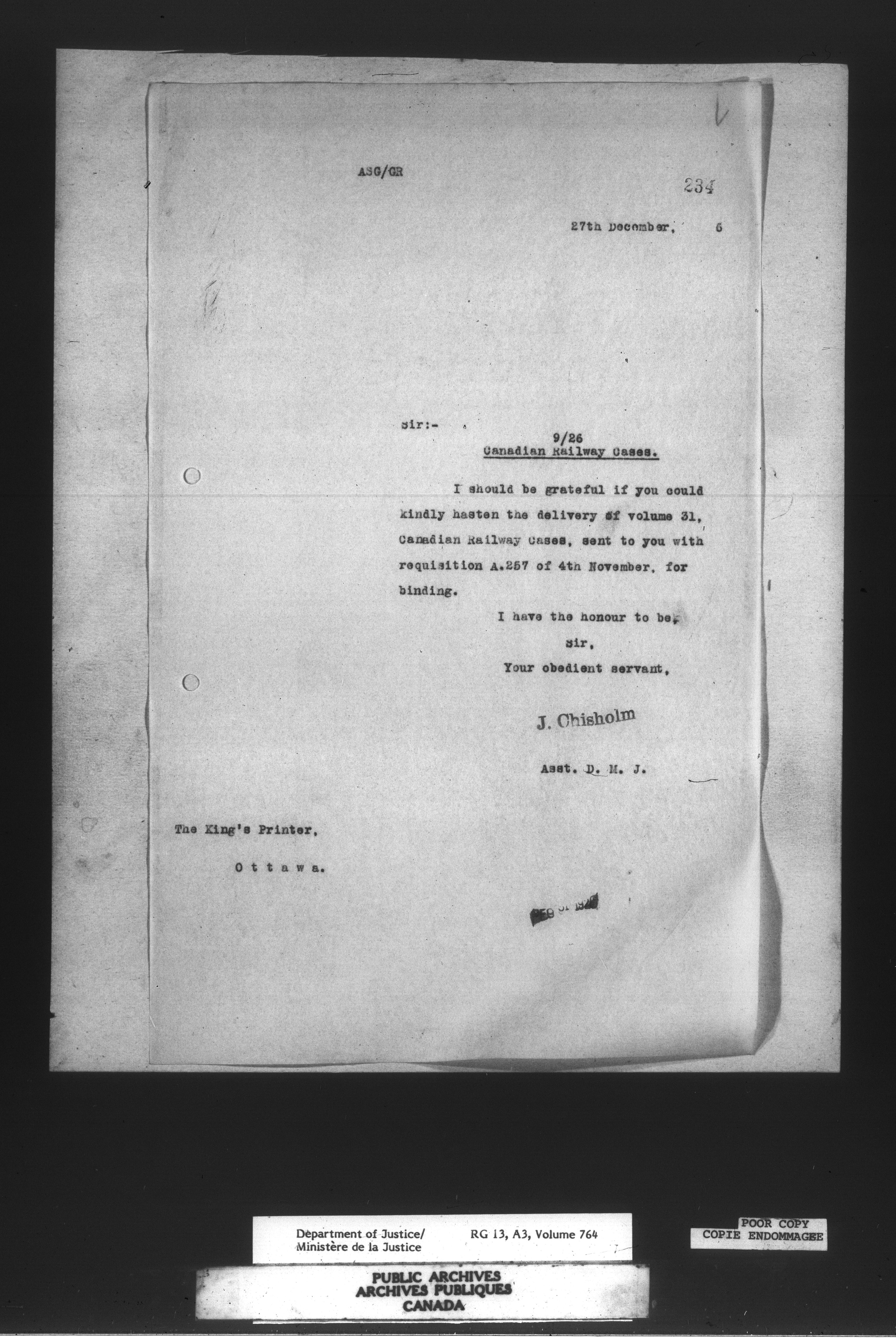 Letterbooks of the Office of the Deputy Minister of Justice - 14736