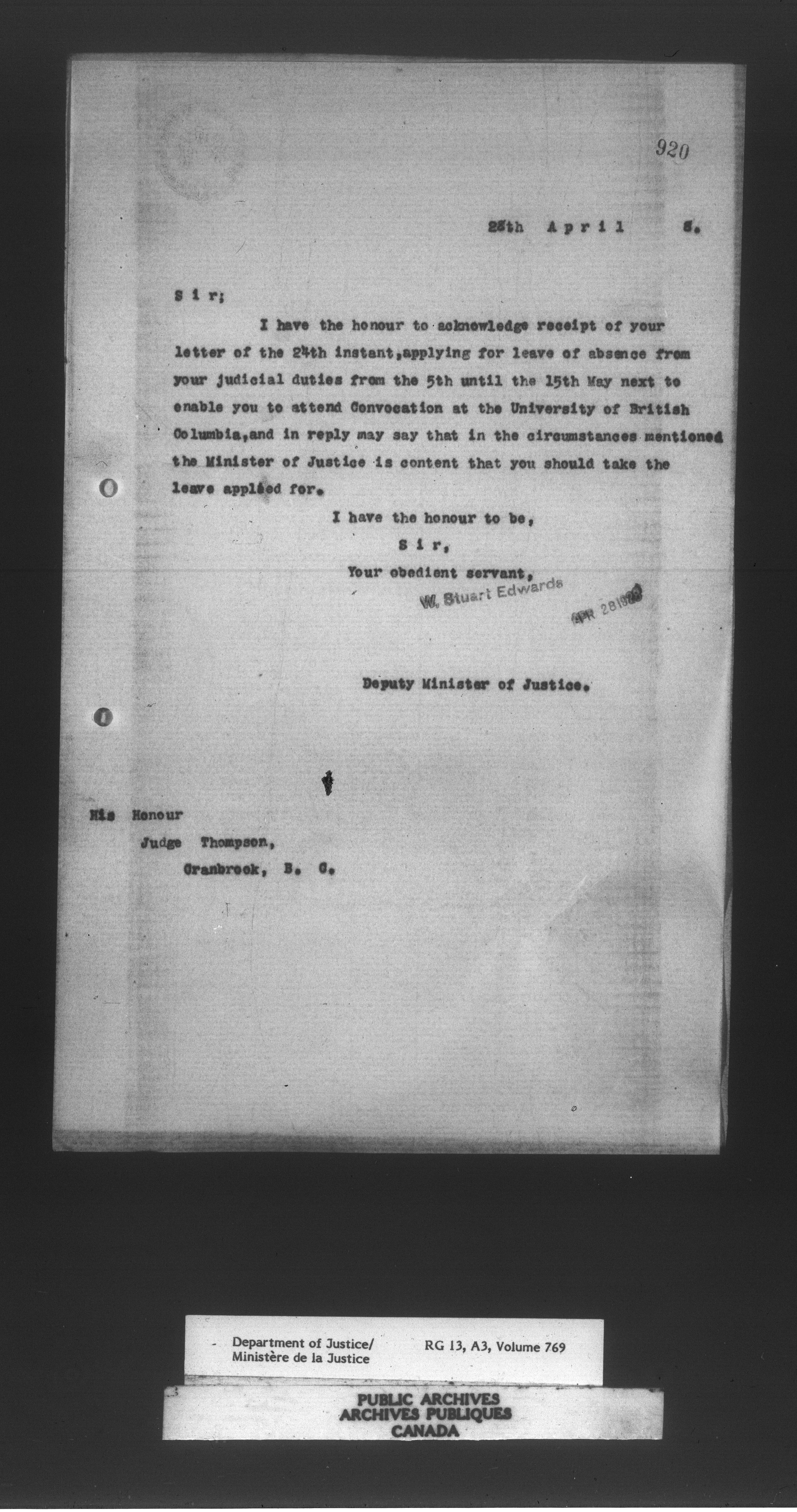 Letterbooks of the Office of the Deputy Minister of Justice - 14739