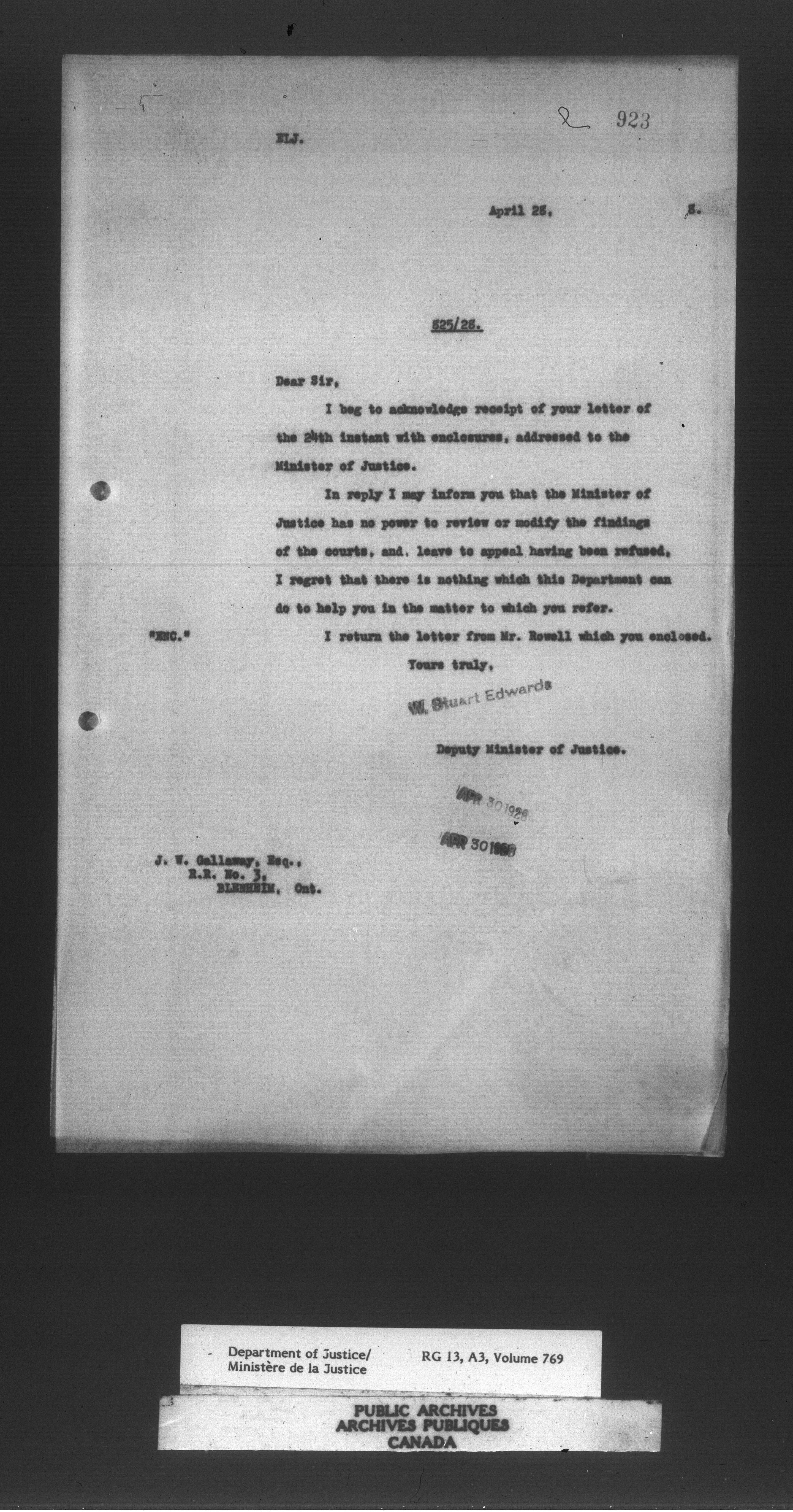 Letterbooks of the Office of the Deputy Minister of Justice - 14739
