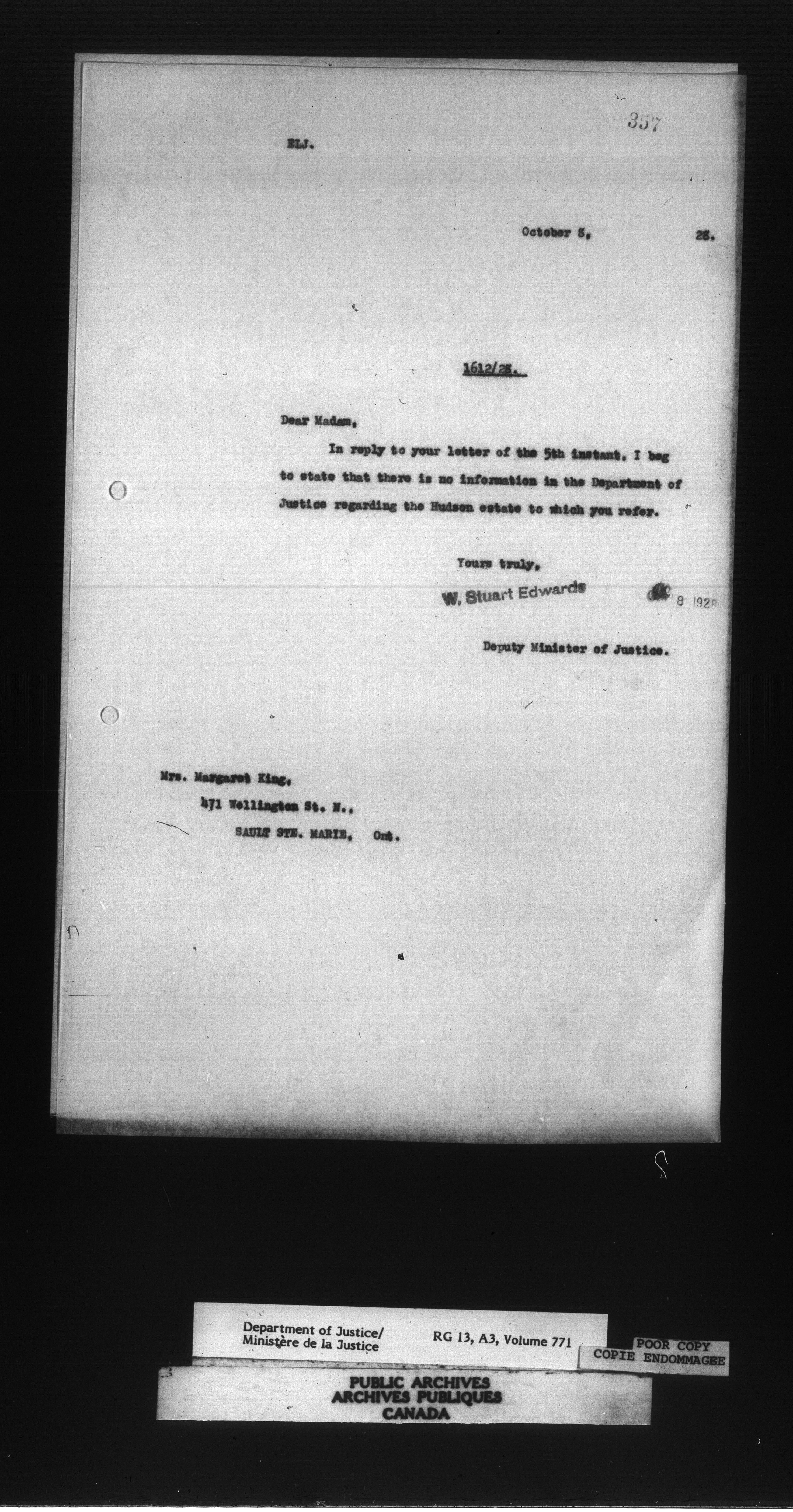 Letterbooks of the Office of the Deputy Minister of Justice - 14741
