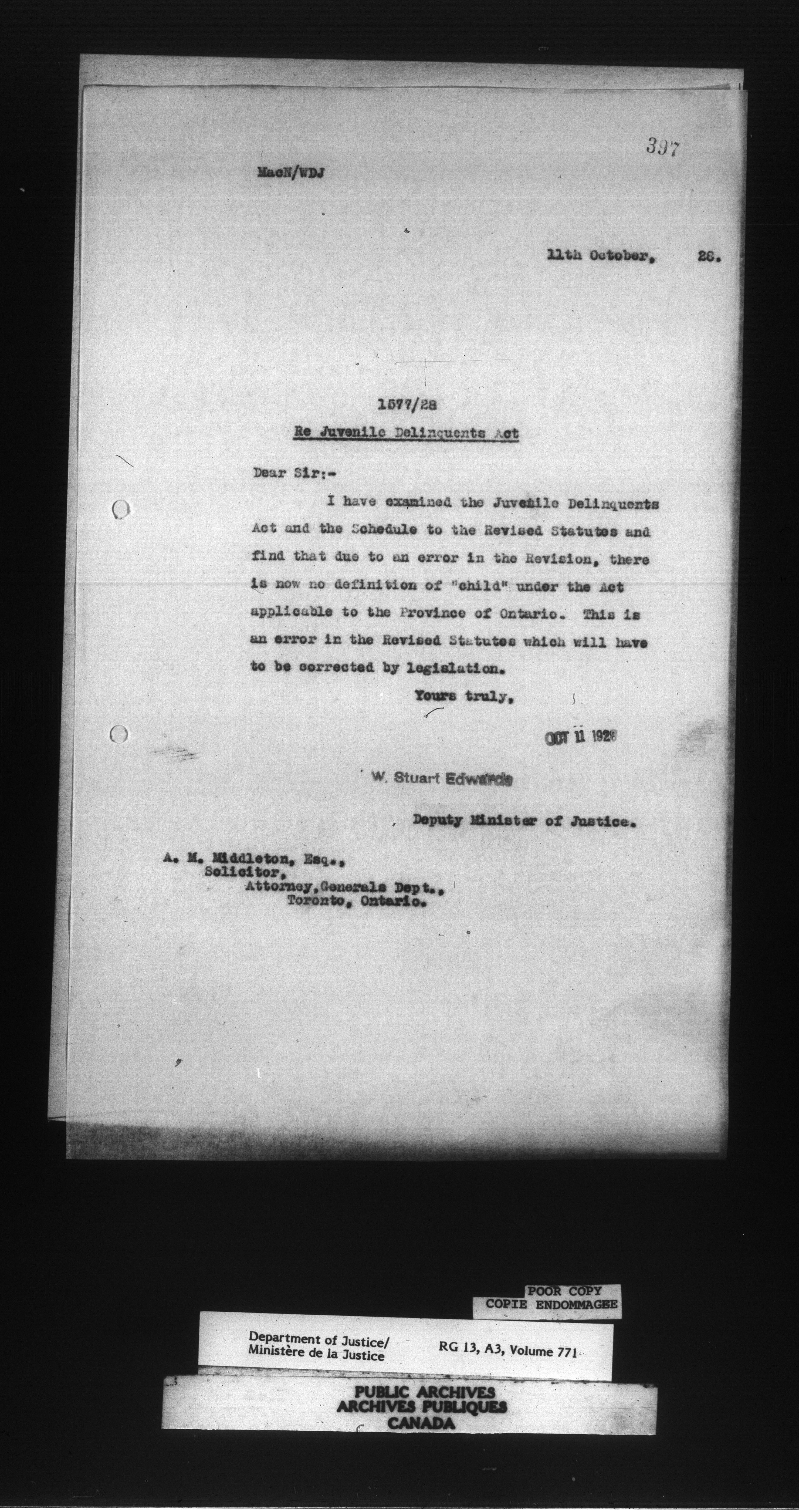 Letterbooks of the Office of the Deputy Minister of Justice - 14741