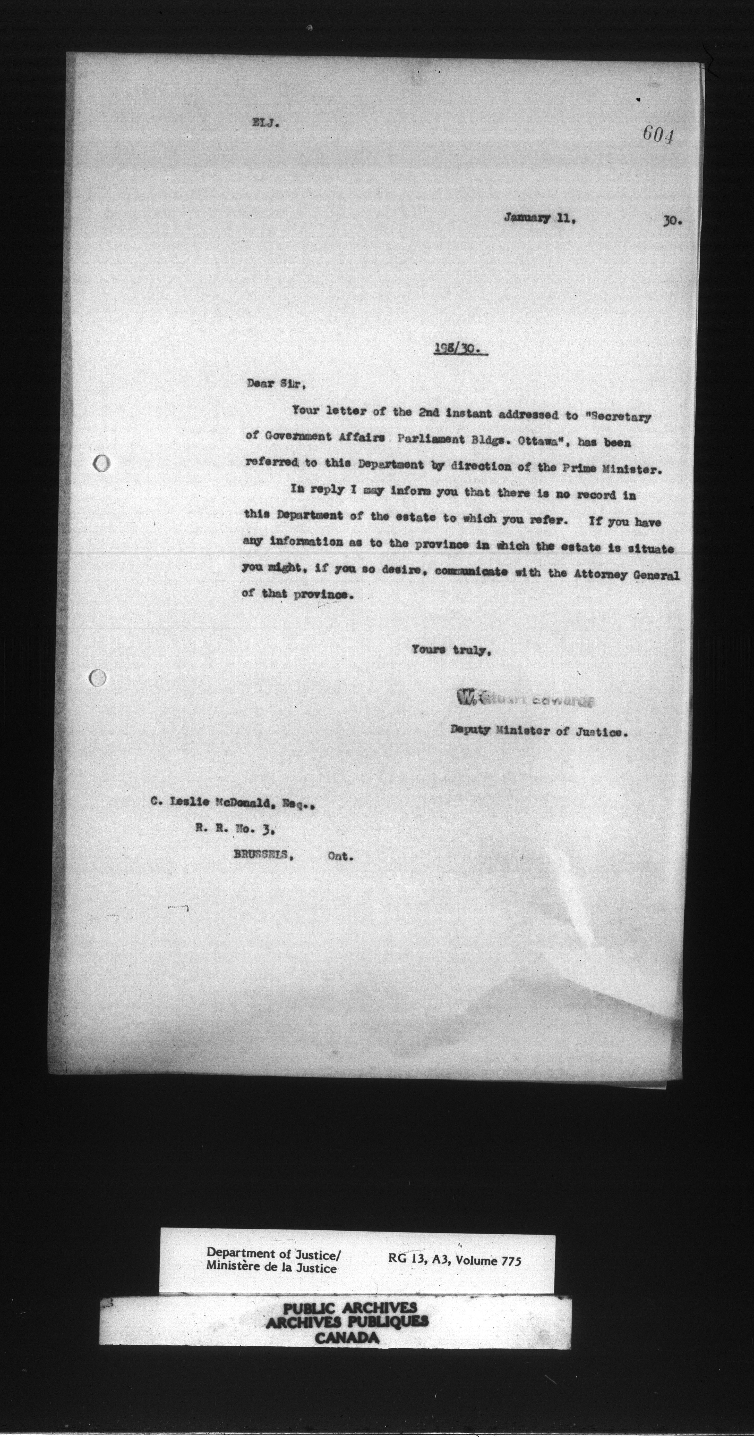 Letterbooks of the Office of the Deputy Minister of Justice - 14744