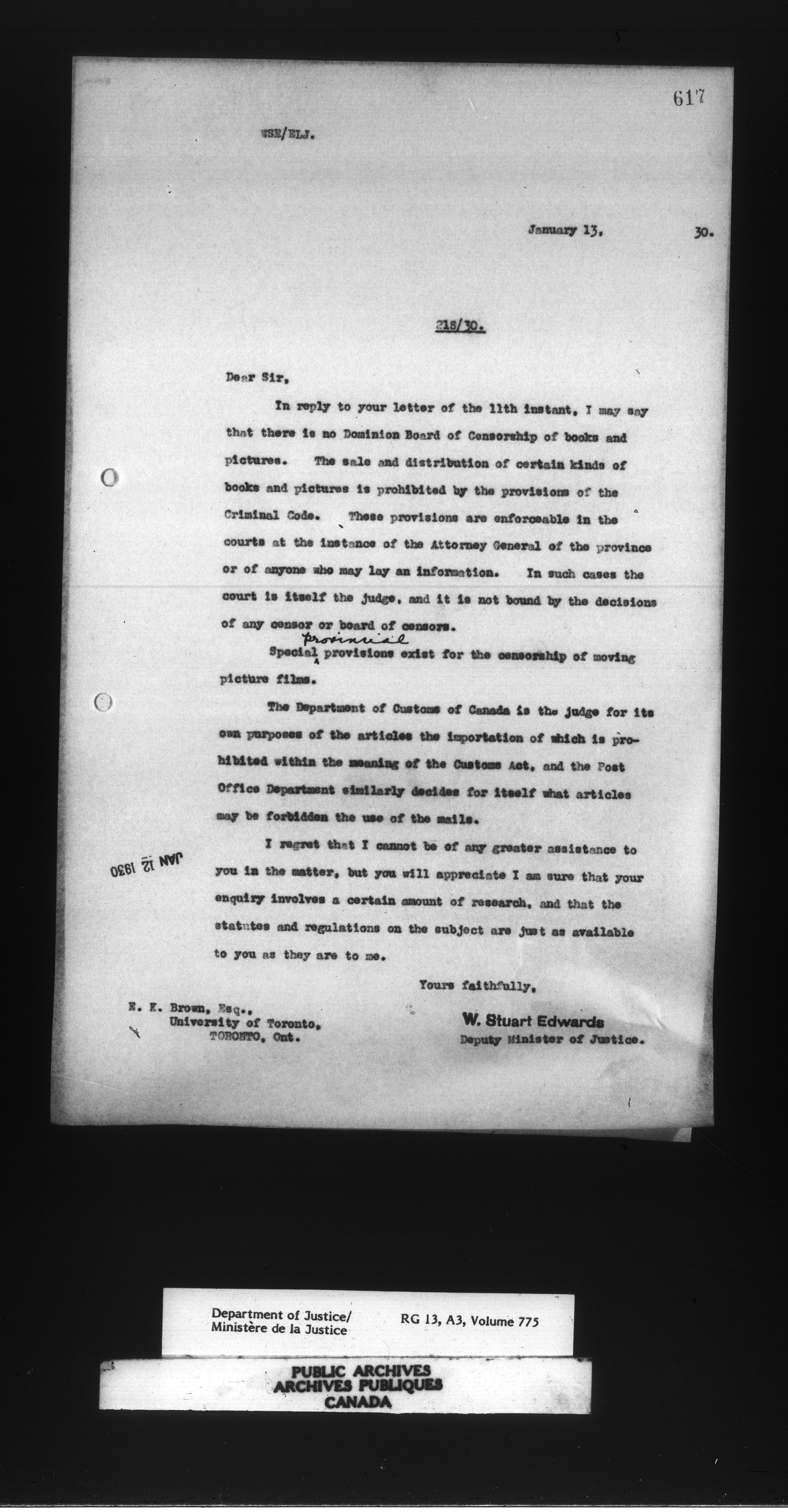 Letterbooks of the Office of the Deputy Minister of Justice - 14744