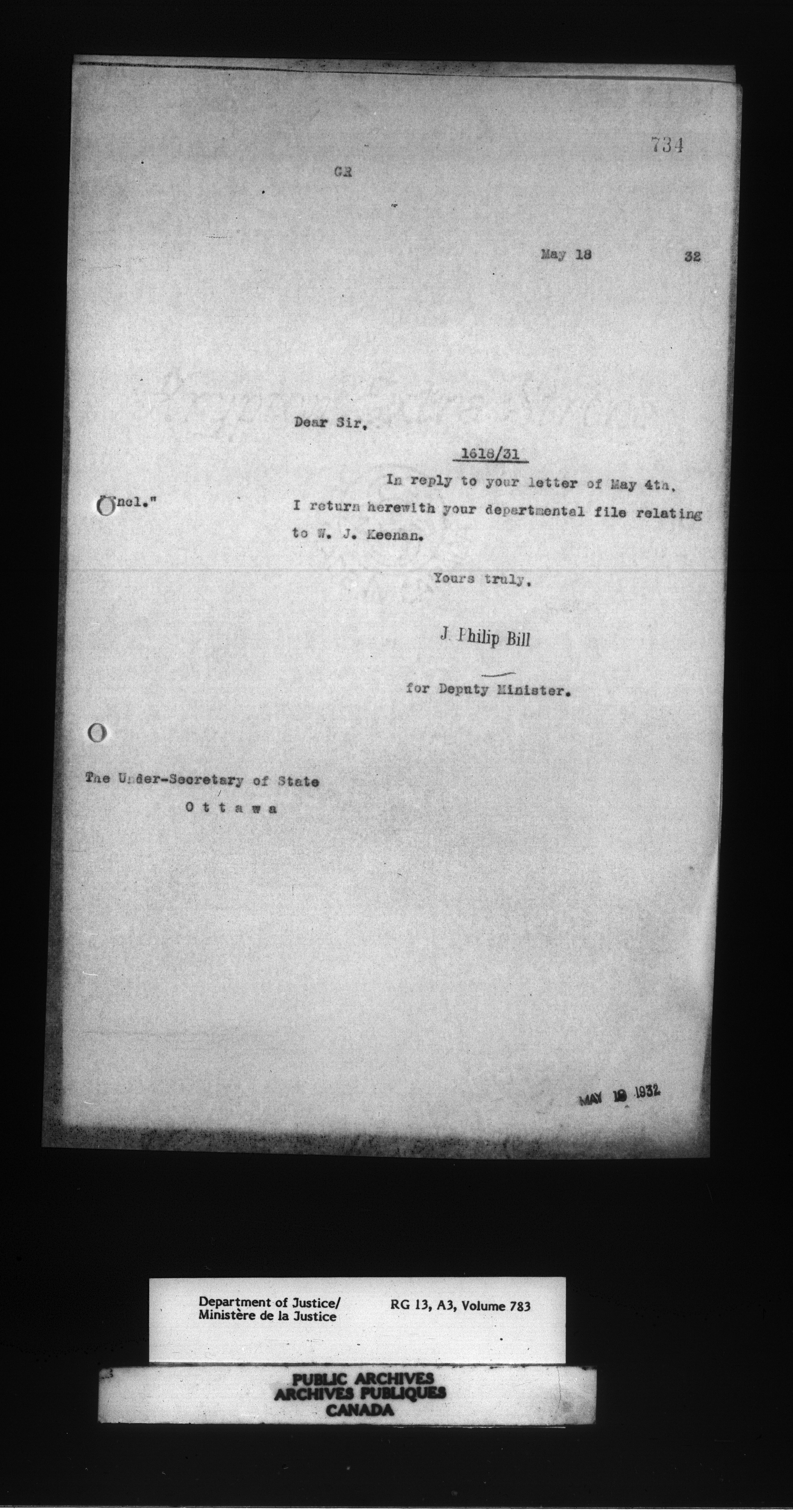Letterbooks of the Office of the Deputy Minister of Justice - 14750