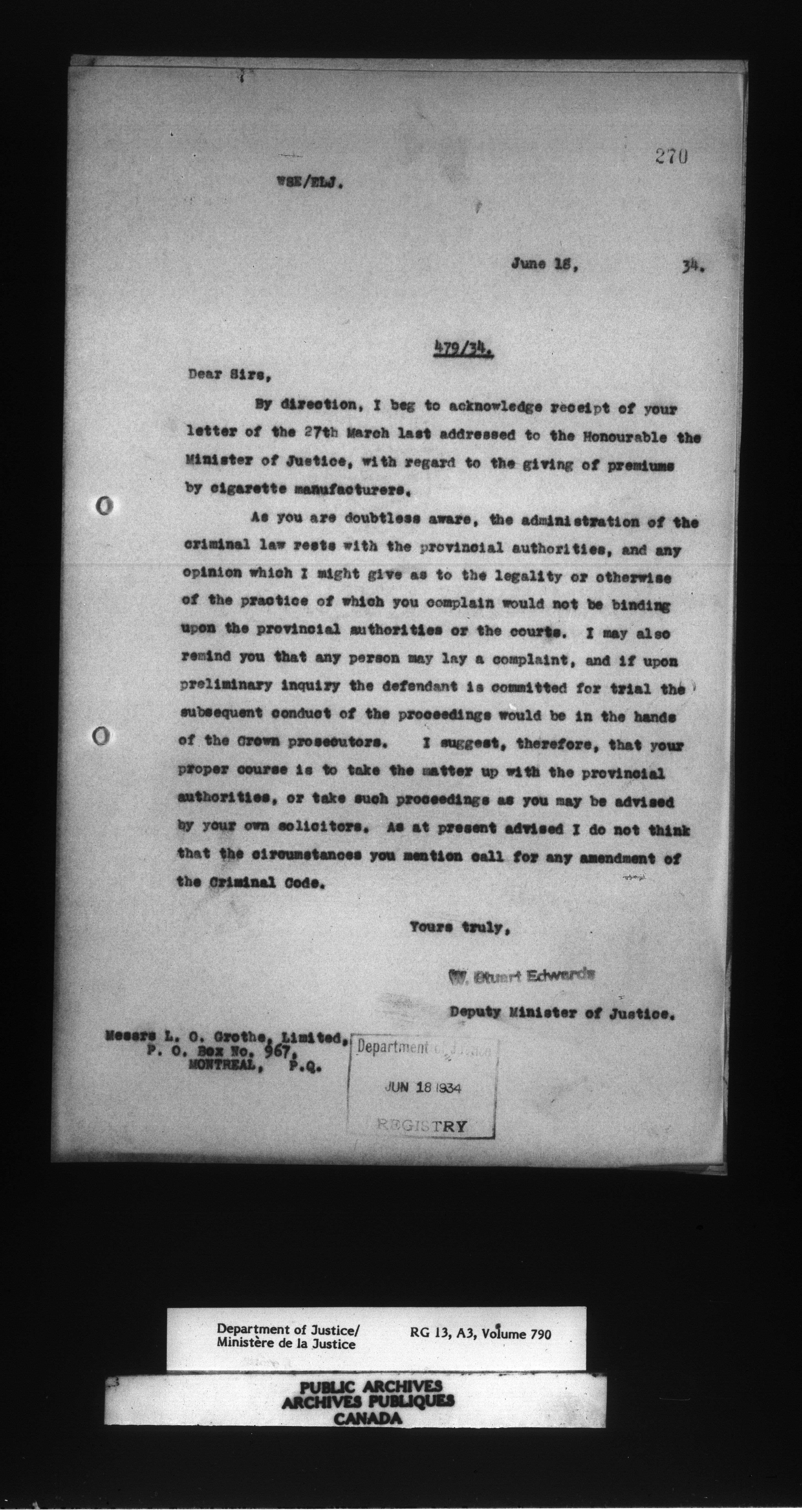 Letterbooks of the Office of the Deputy Minister of Justice - 14755