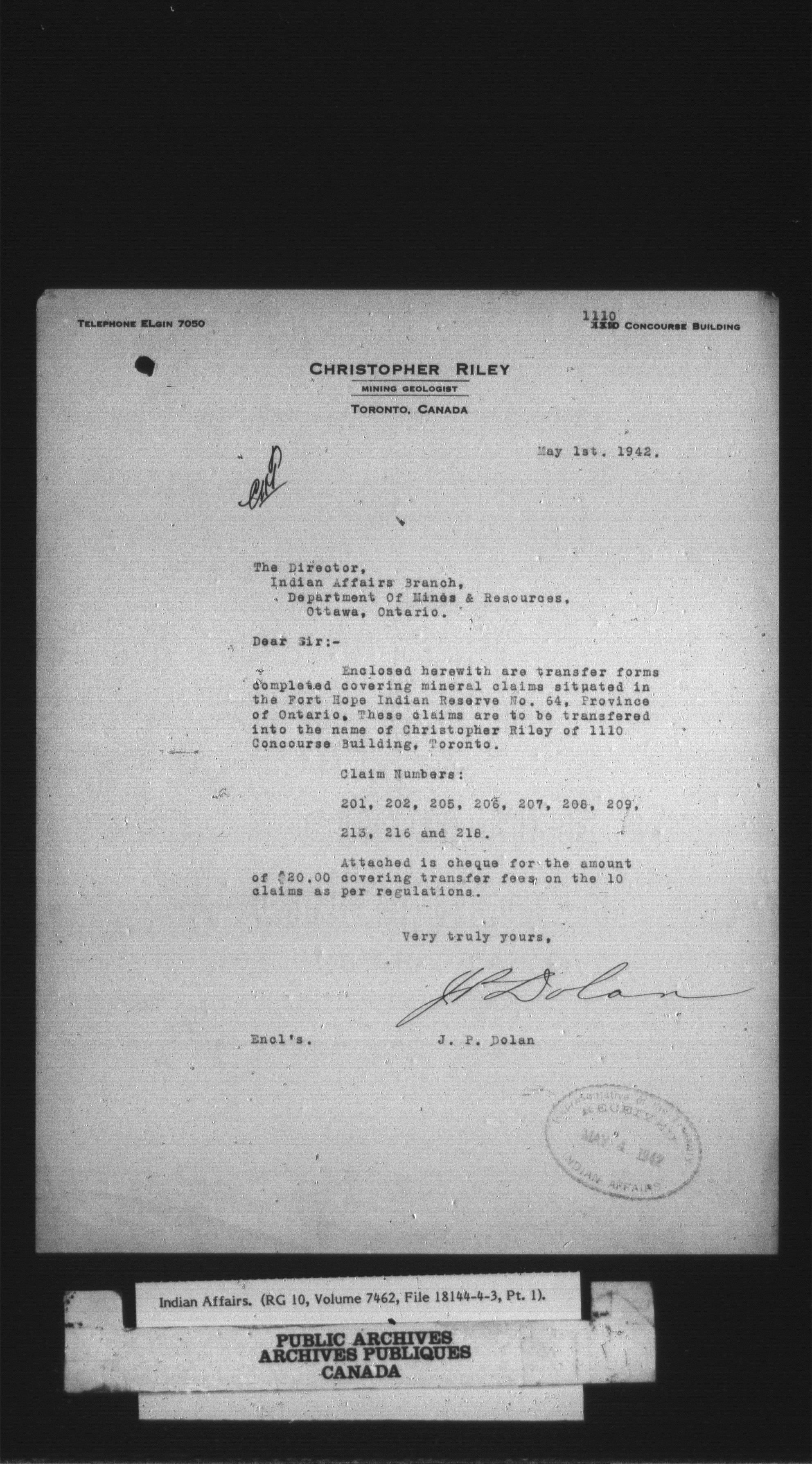 Department of Indian Affairs, Headquarters central registry system : thousand series - 14765
