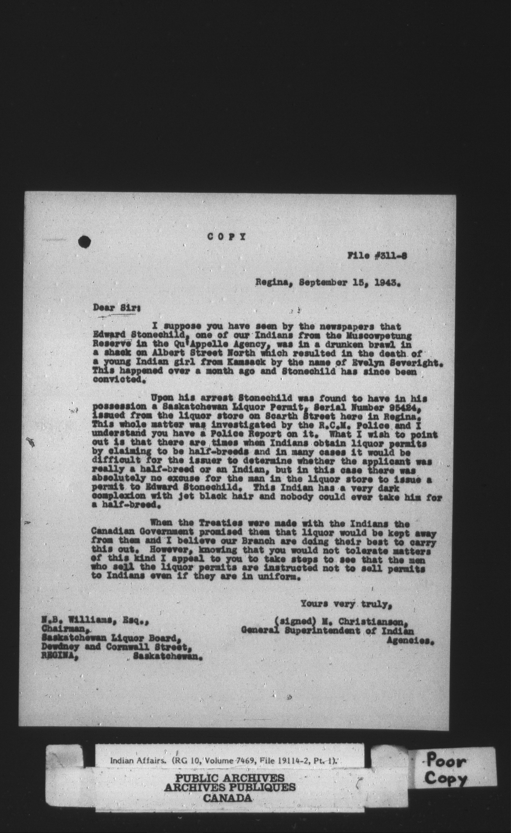 Department of Indian Affairs, Headquarters central registry system : thousand series - 14768