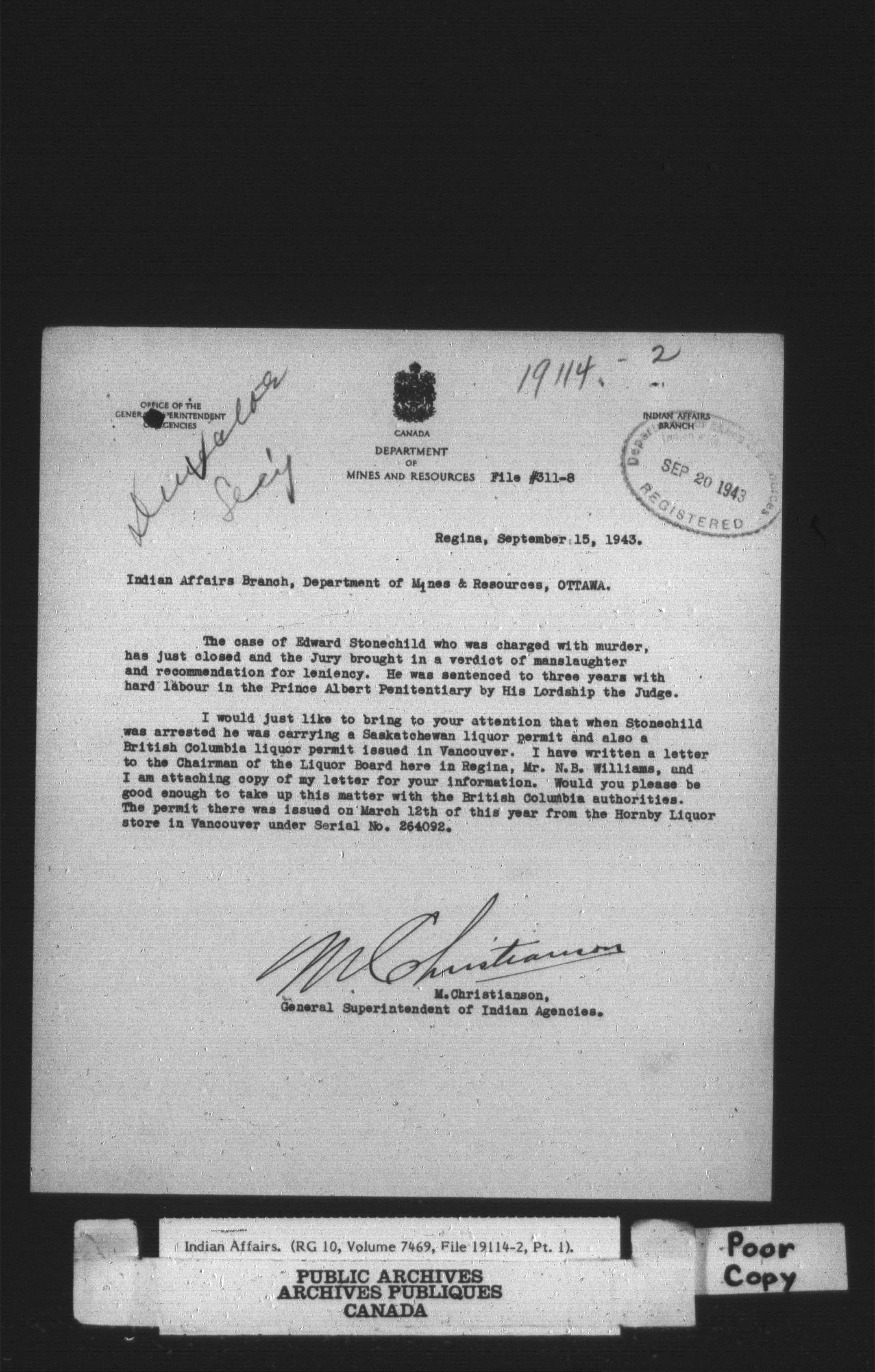 Department of Indian Affairs, Headquarters central registry system : thousand series - 14768