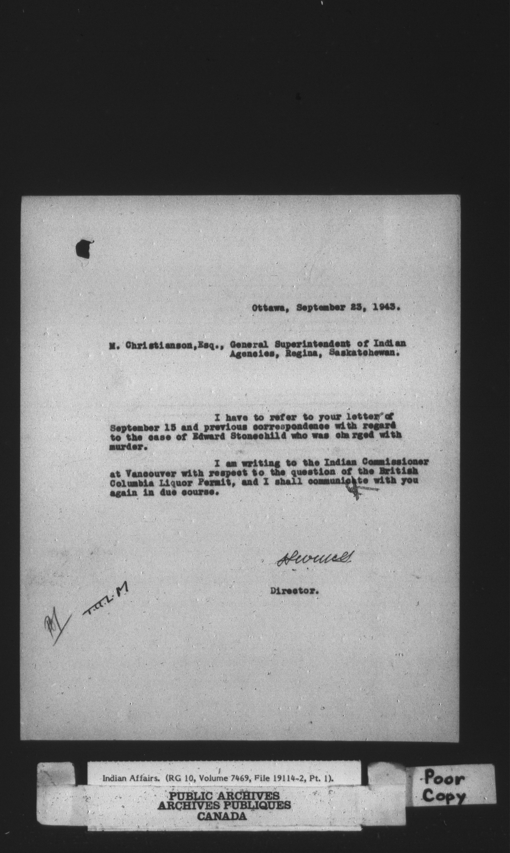 Department of Indian Affairs, Headquarters central registry system : thousand series - 14768