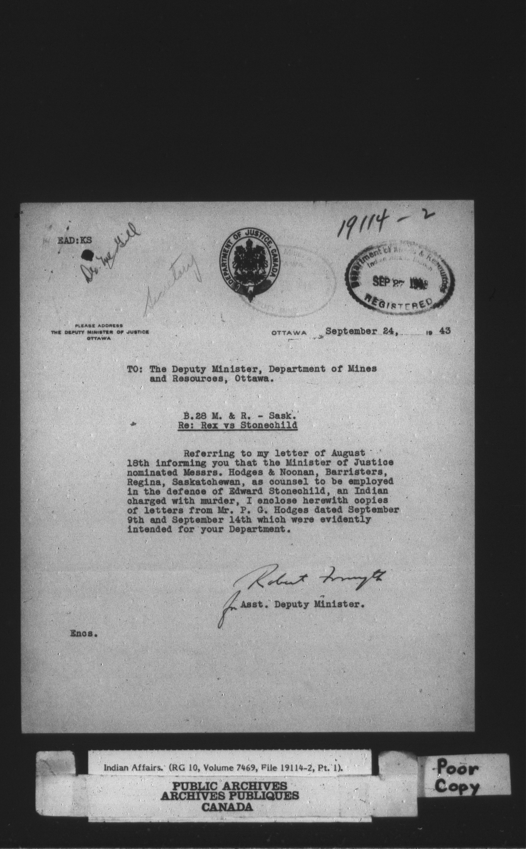 Department of Indian Affairs, Headquarters central registry system : thousand series - 14768