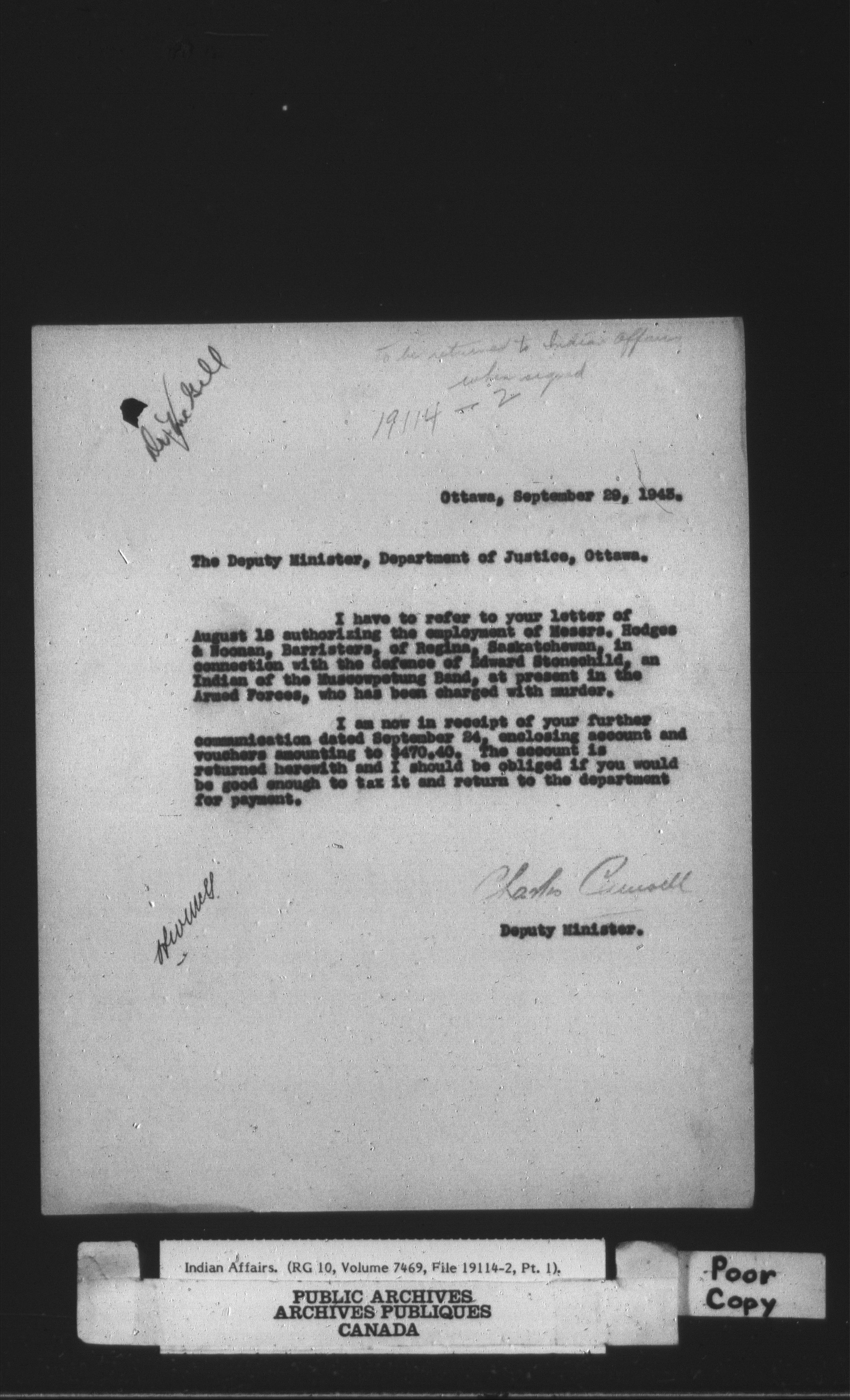 Department of Indian Affairs, Headquarters central registry system : thousand series - 14768