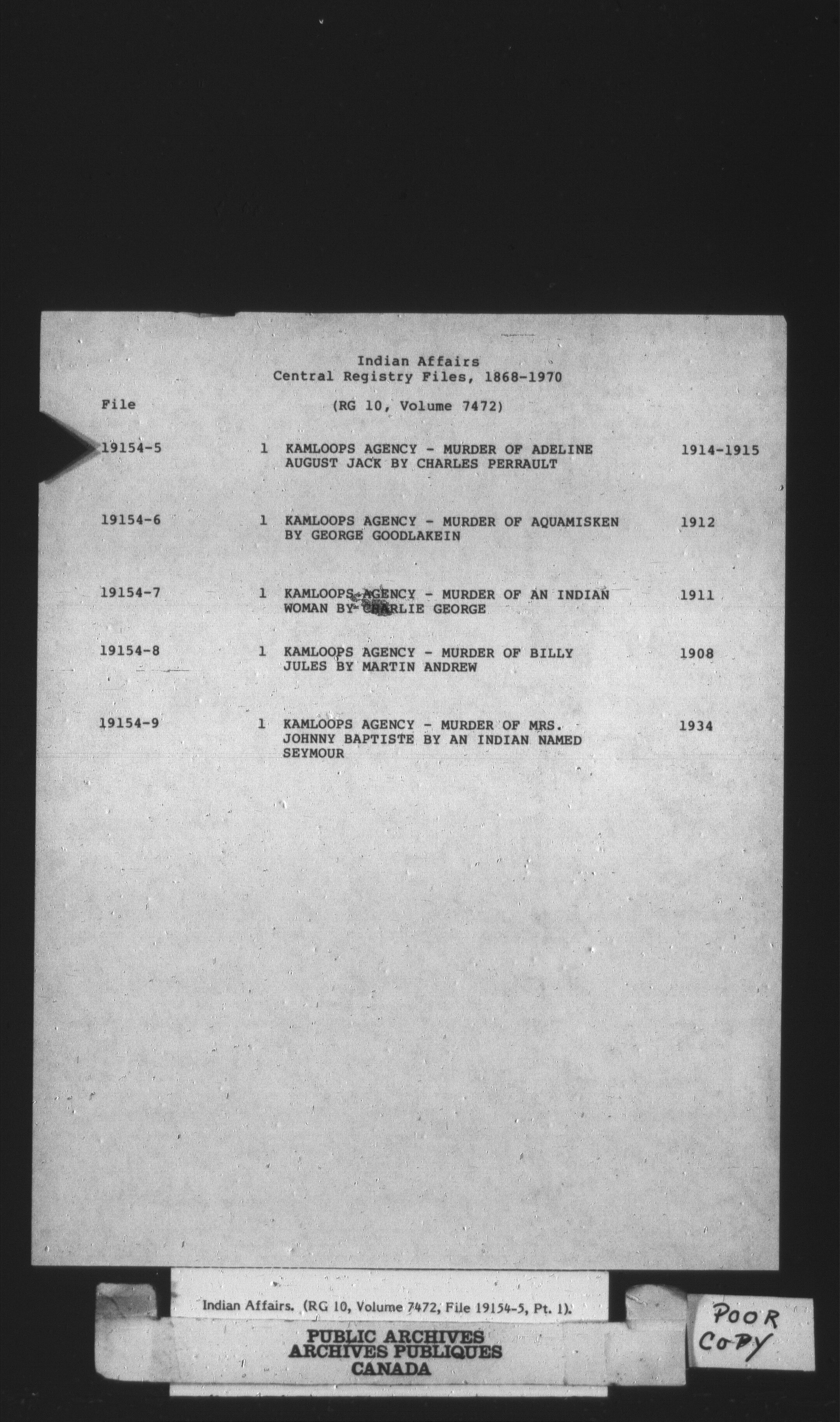 Department of Indian Affairs, Headquarters central registry system : thousand series : C-14770