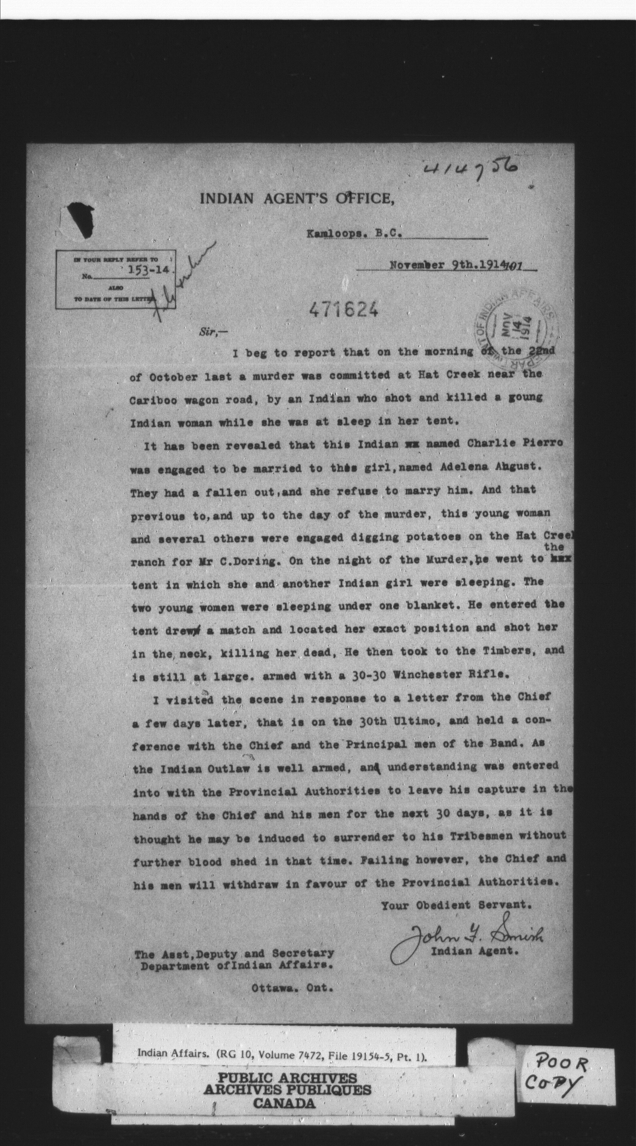 Department of Indian Affairs, Headquarters central registry system : thousand series - 14770