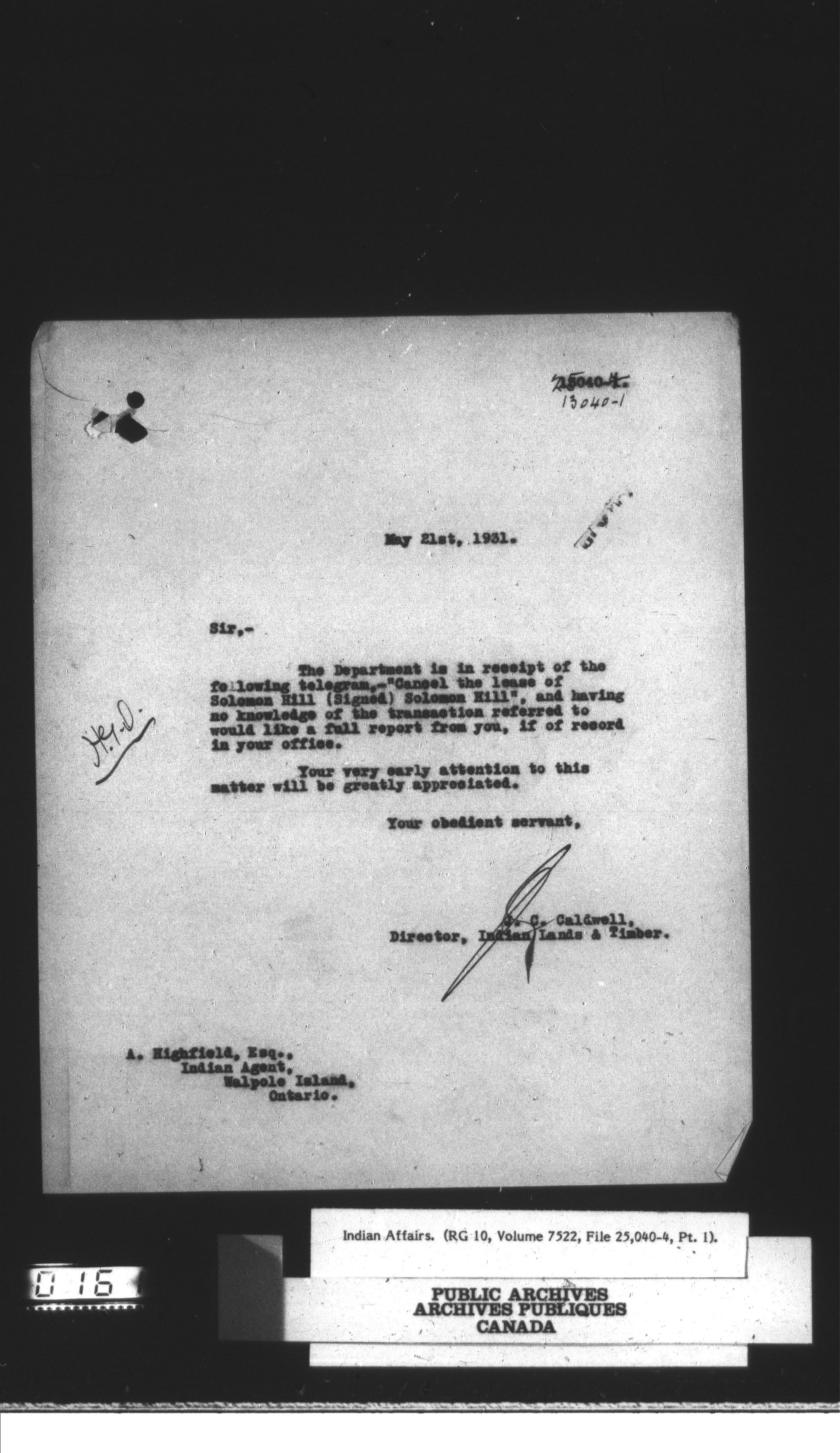 Department of Indian Affairs, Headquarters central registry system : thousand series (Volume 7522, file 25040-4 to vol. 7524, file 25109-5) - 14802
