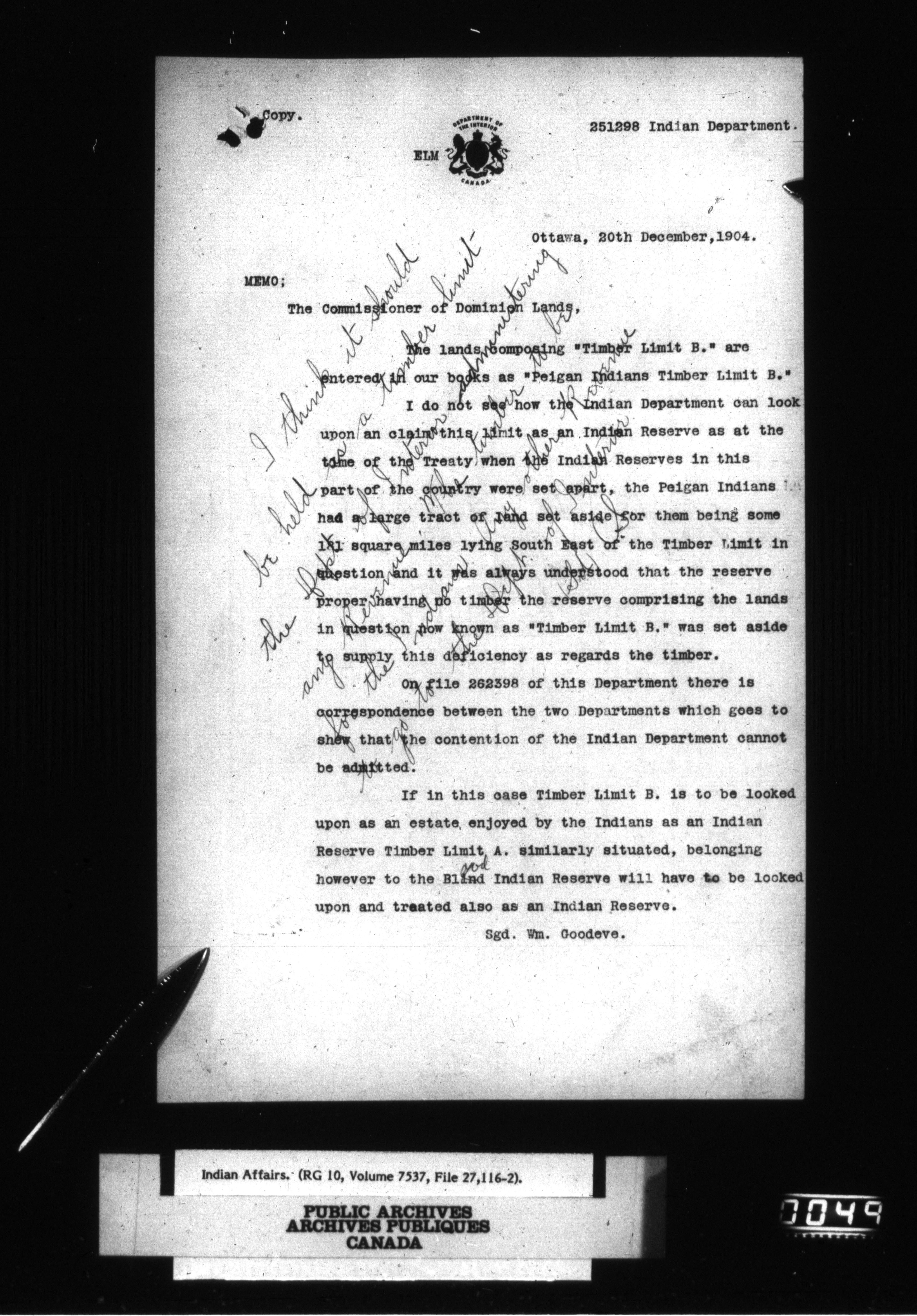 Department of Indian Affairs, Headquarters central registry system : thousand series - 14808