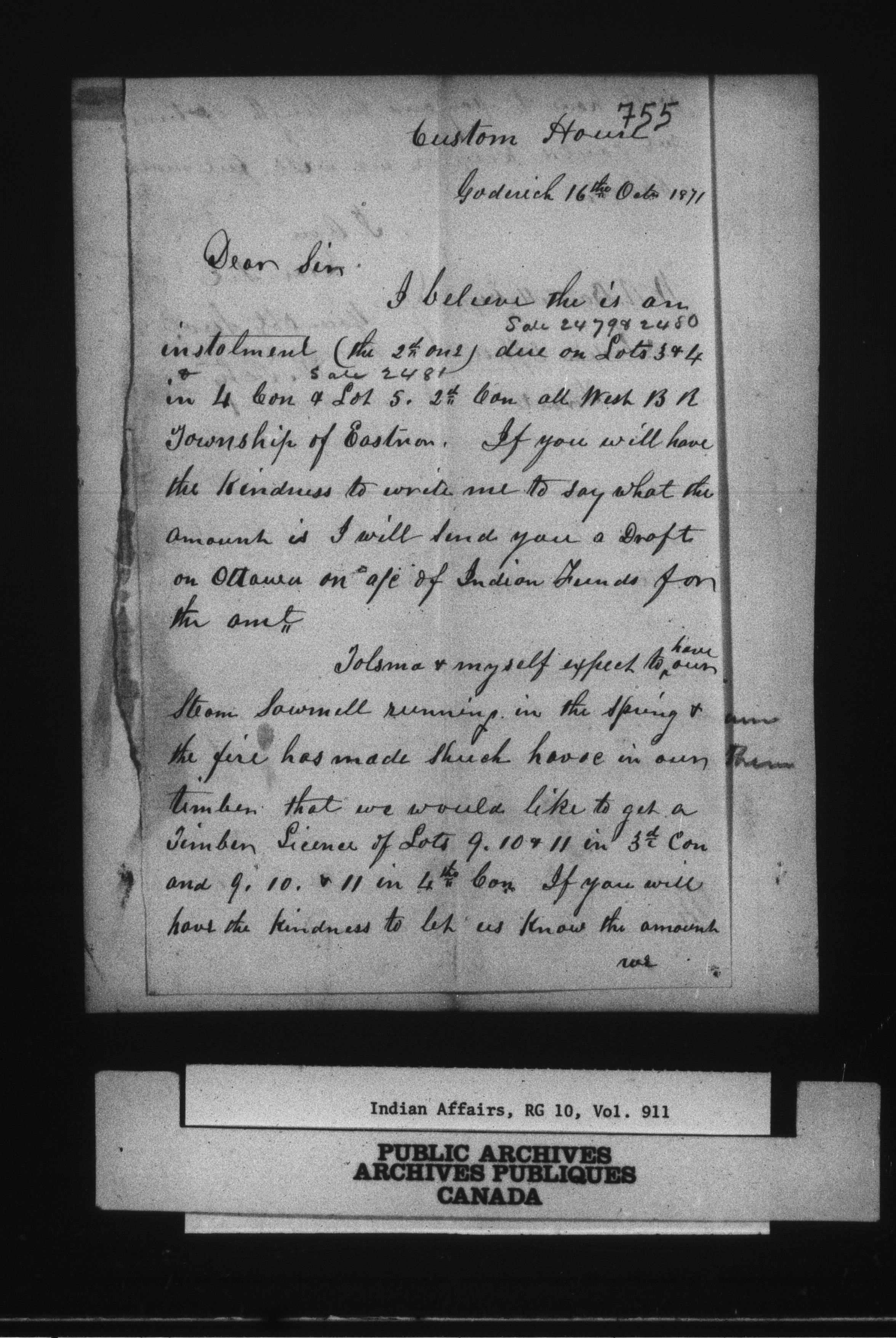 Indian Land Records Wiarton Land Office correspondence - 14821