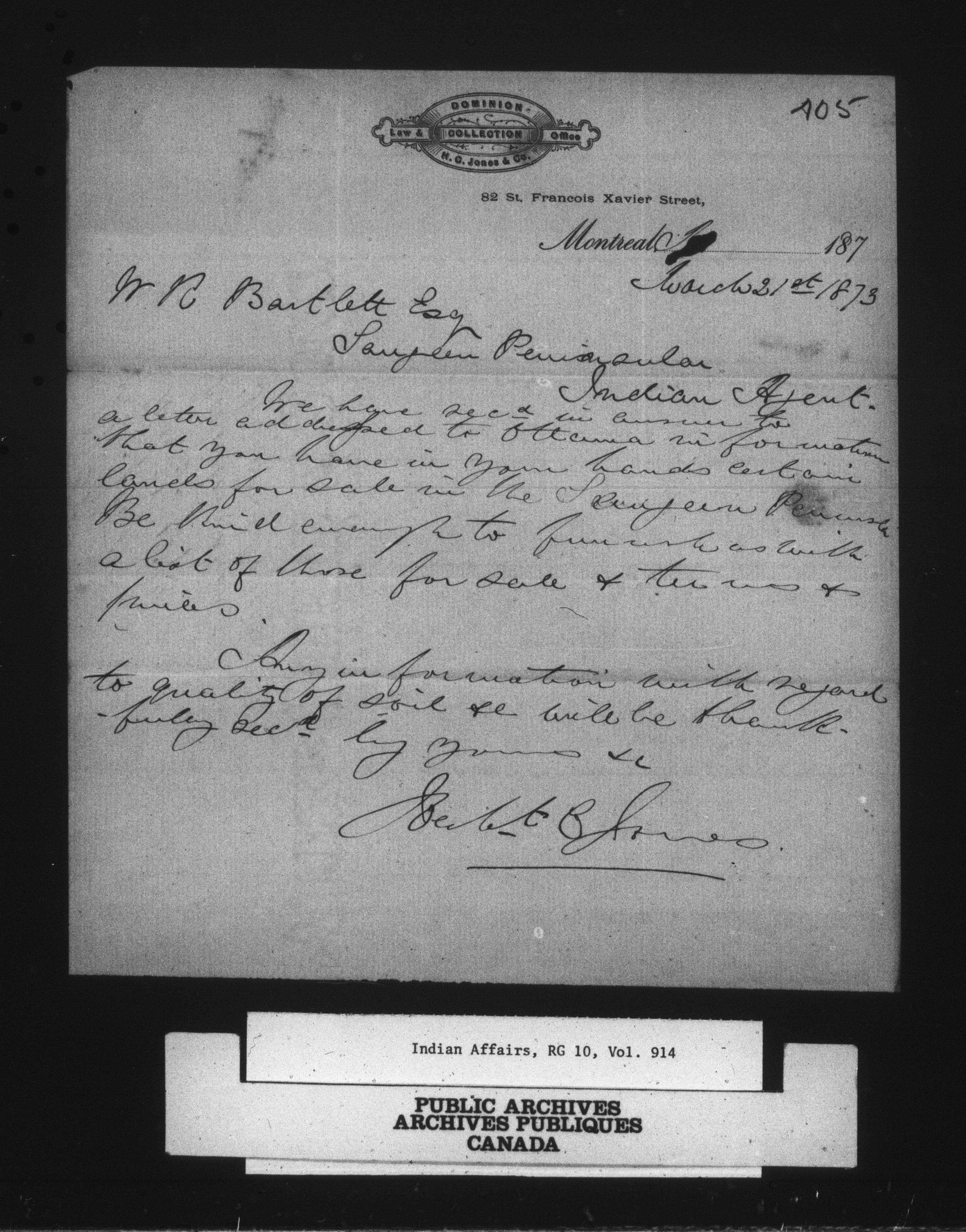 Indian Land Records Wiarton Land Office correspondence - 14823