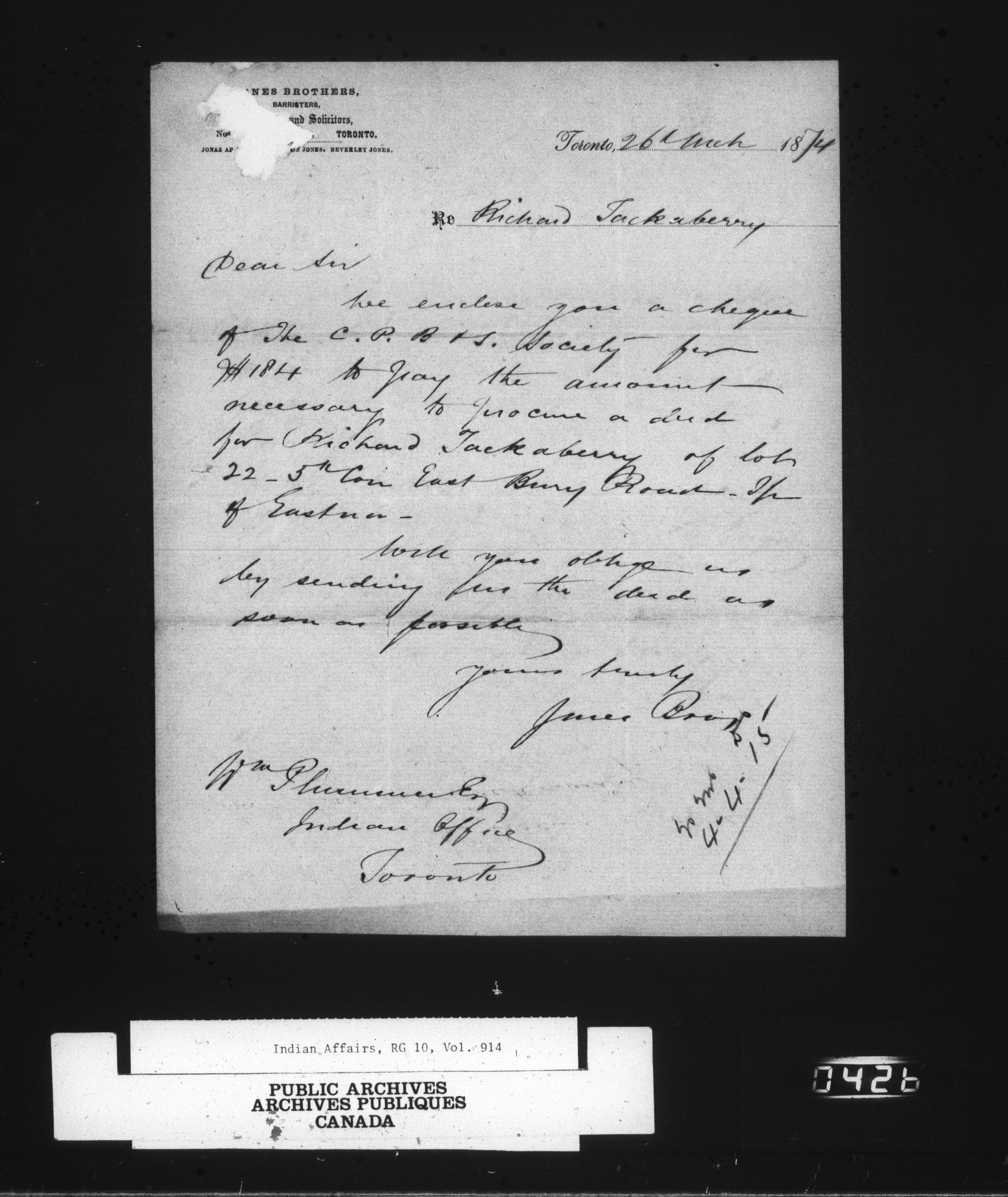 Indian Land Records Wiarton Land Office correspondence - 14823
