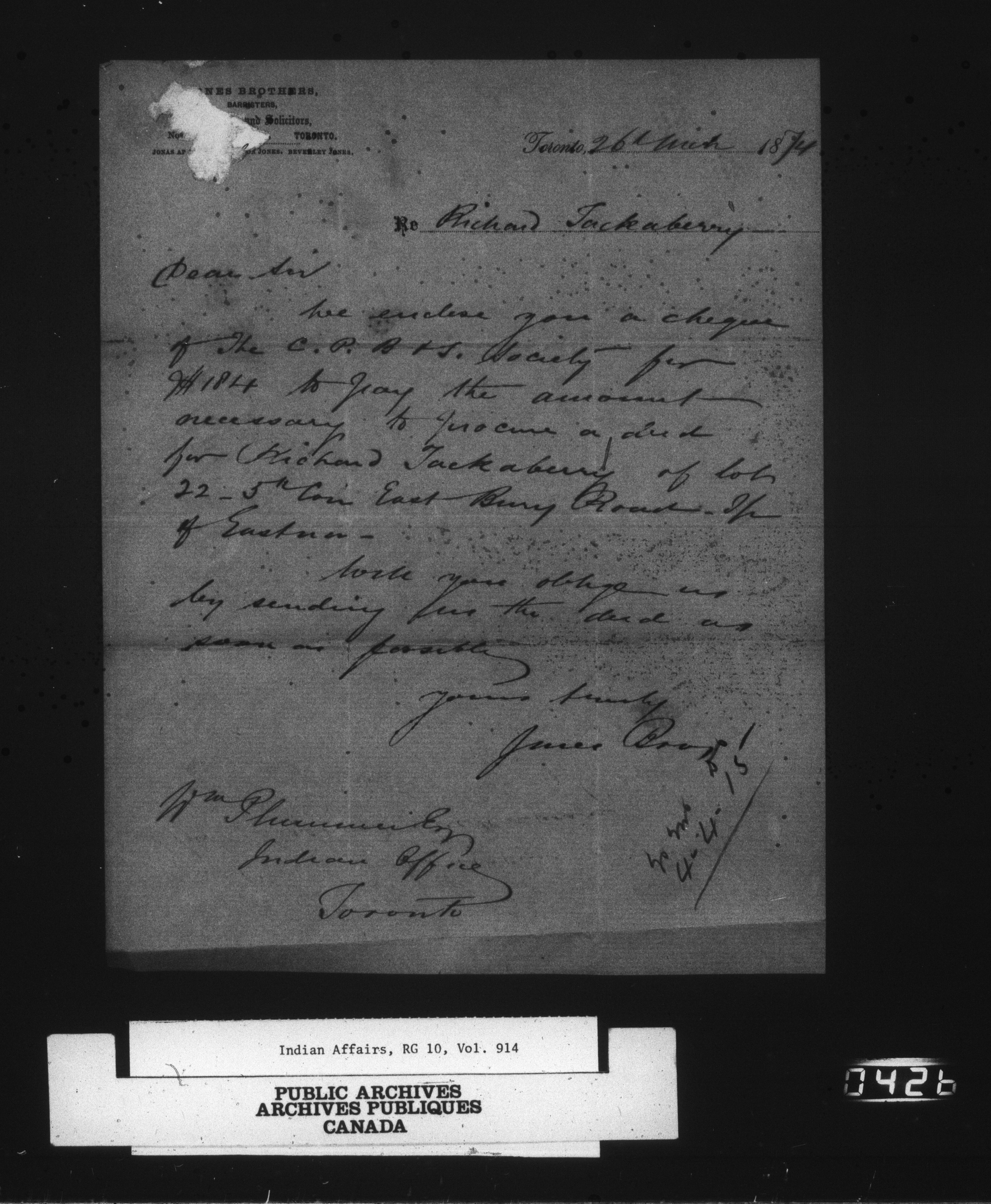 Indian Land Records Wiarton Land Office correspondence - 14823