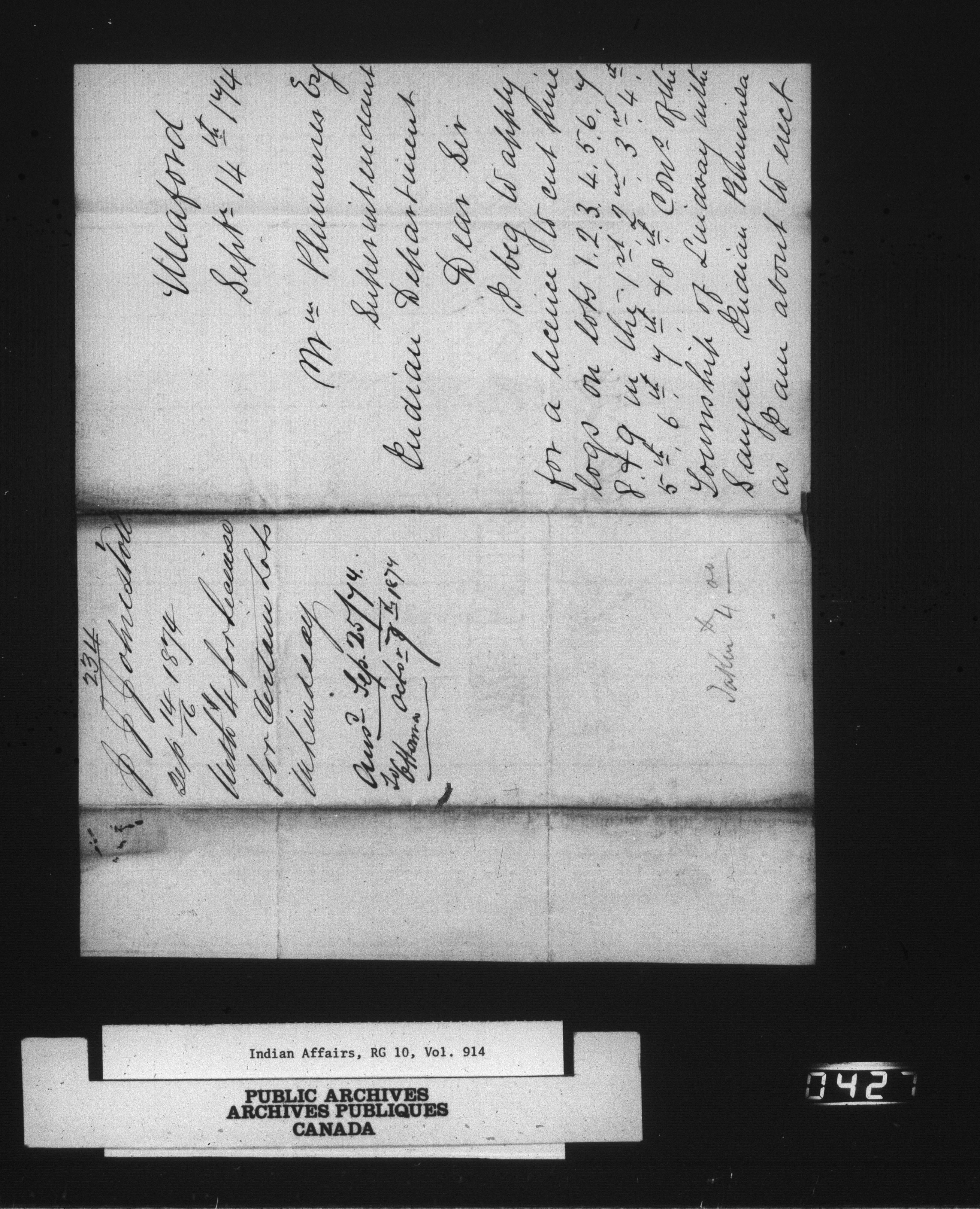 Indian Land Records Wiarton Land Office correspondence - 14823