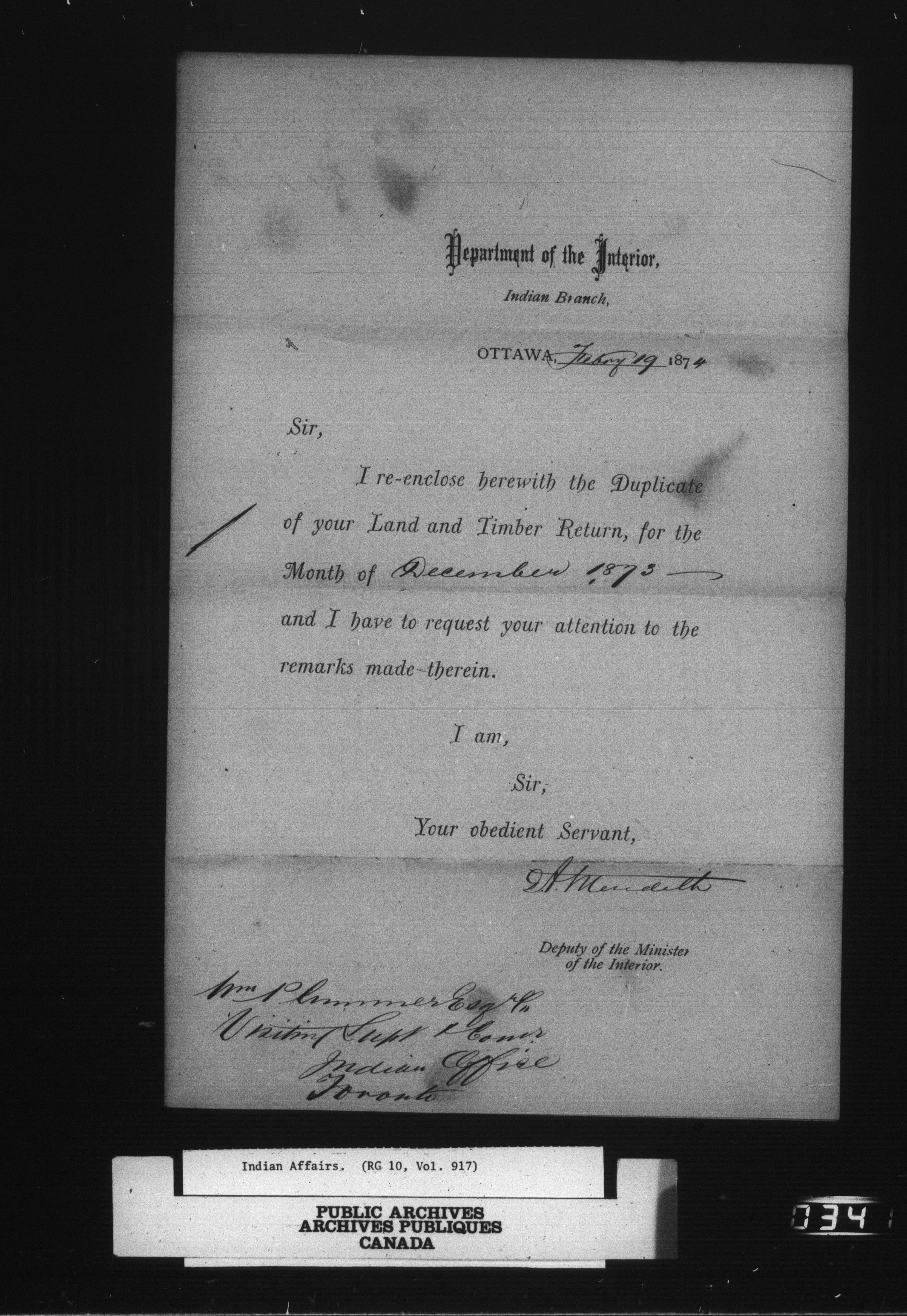 Indian Land Records Wiarton Land Office correspondence - 14824