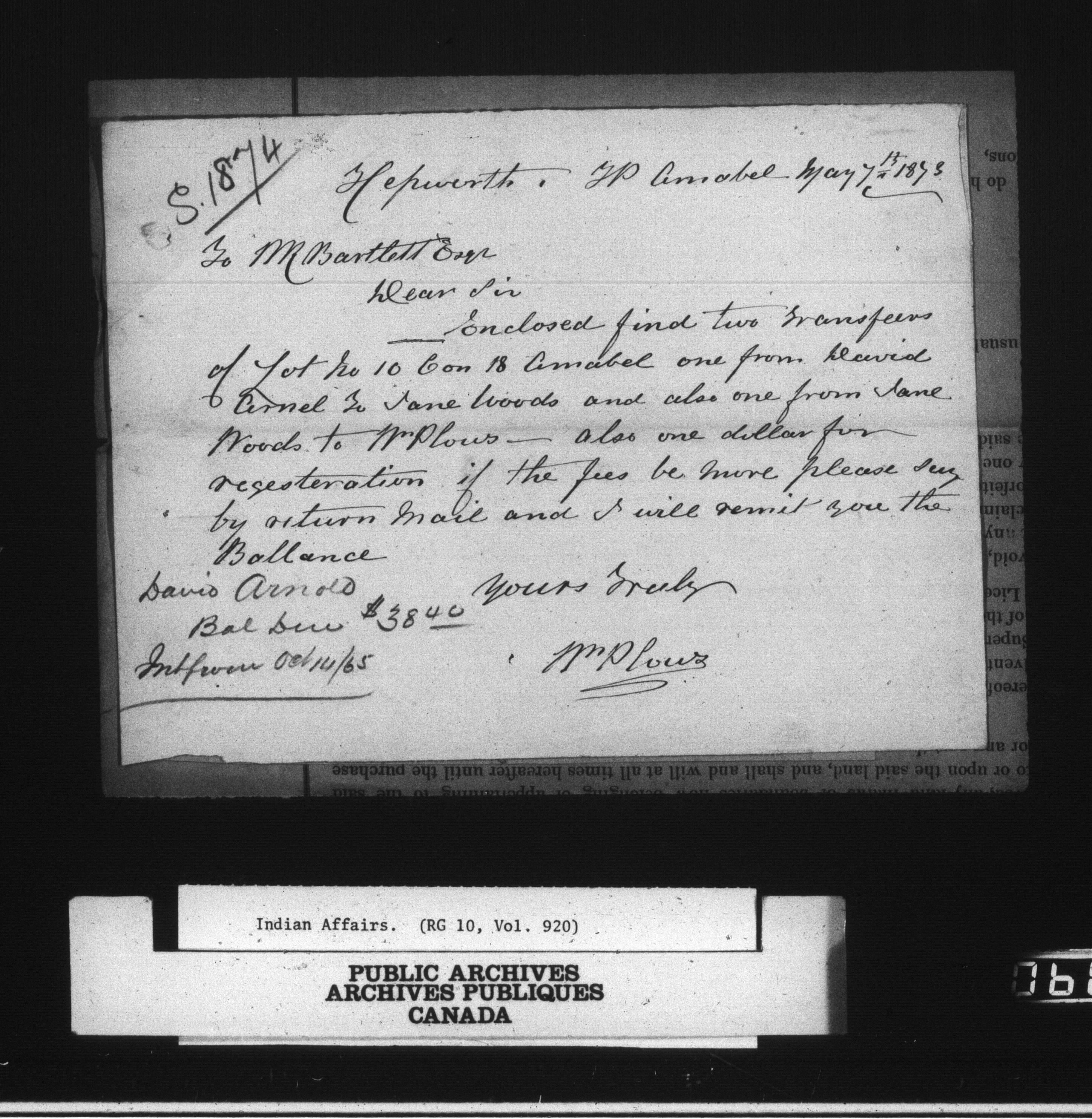 Indian Land Records Wiarton Land Office correspondence - 14825