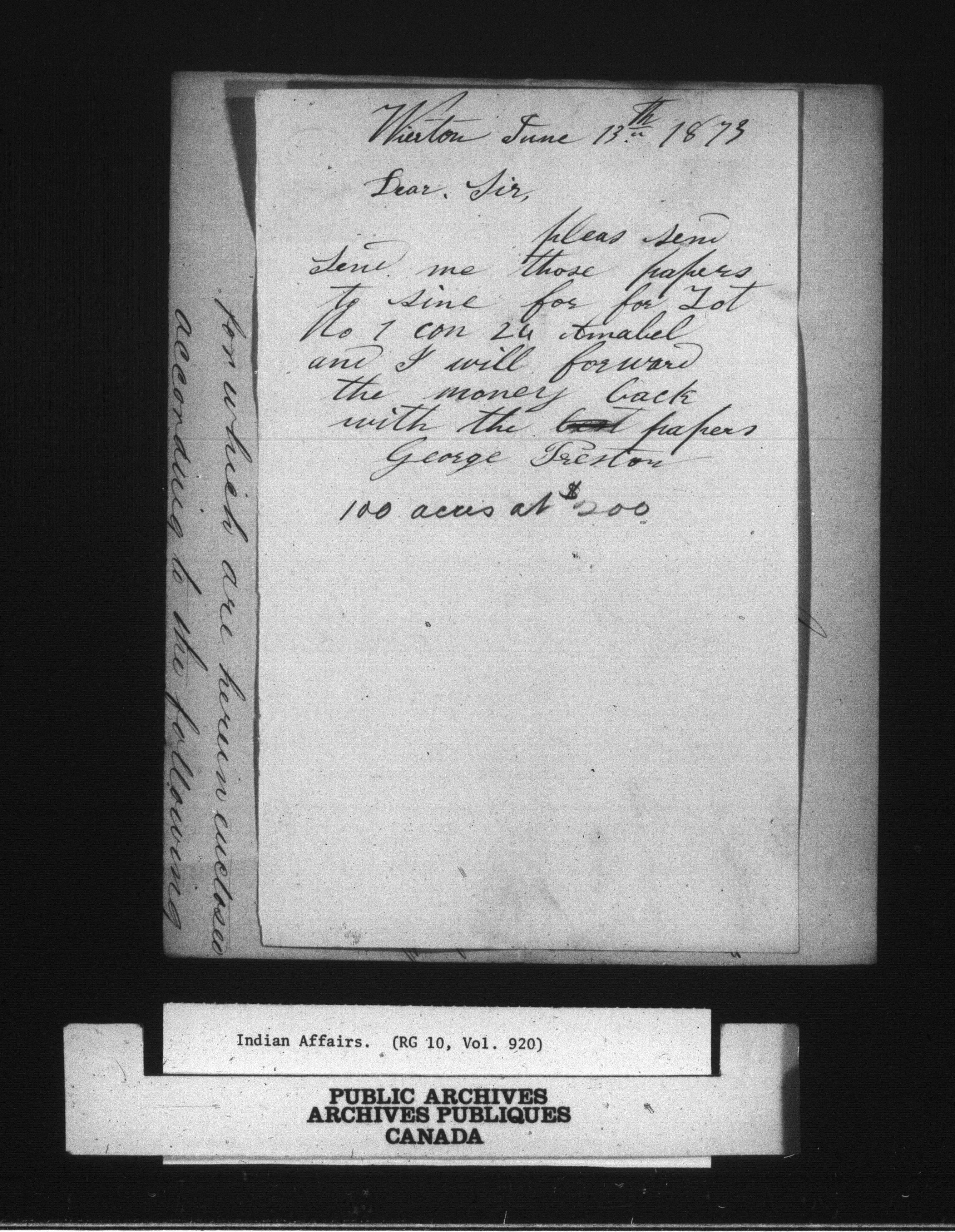 Department of Indian Affairs : Wiarton Land Office : C-14825
