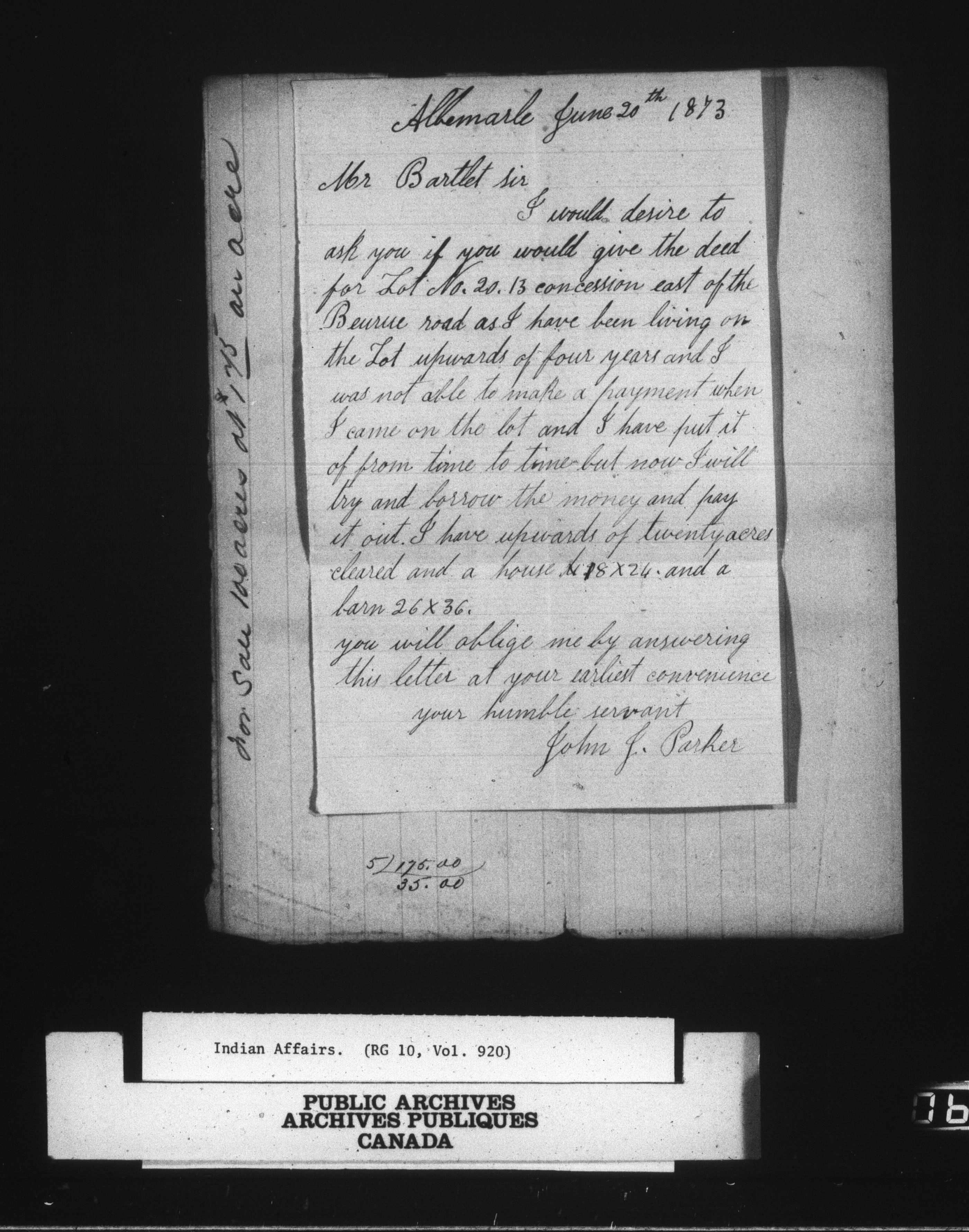 Department of Indian Affairs : Wiarton Land Office : C-14825